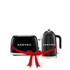 Premium kitchen set featuring a 1.7L electric kettle and 2-slice bread toaster with matching black finish and stainless steel construction.