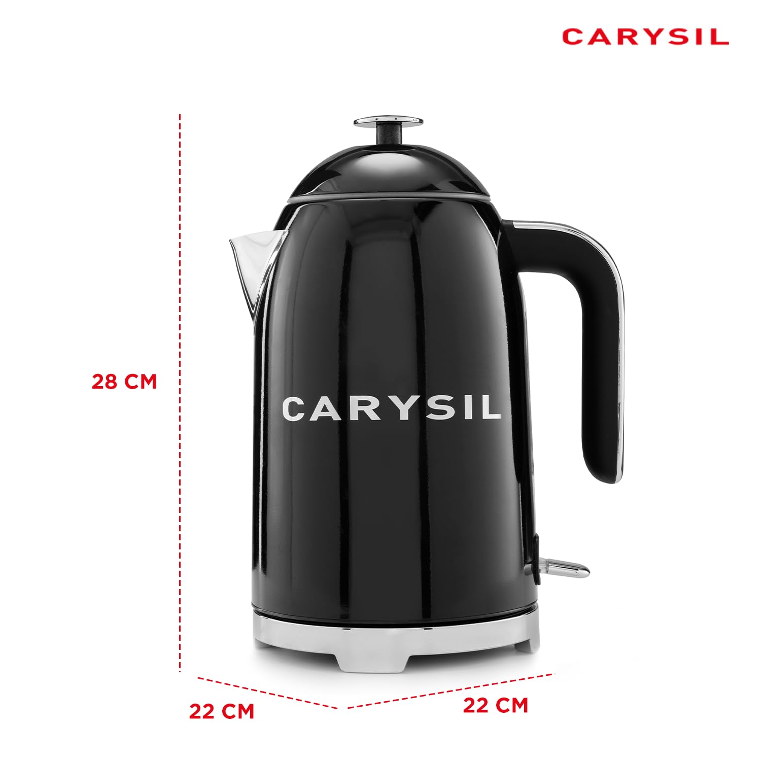 The Carysil Electric Kettle features a premium stainless steel exterior with a striking black finish, giving it a sophisticated and durable design that complements any kitchen decor