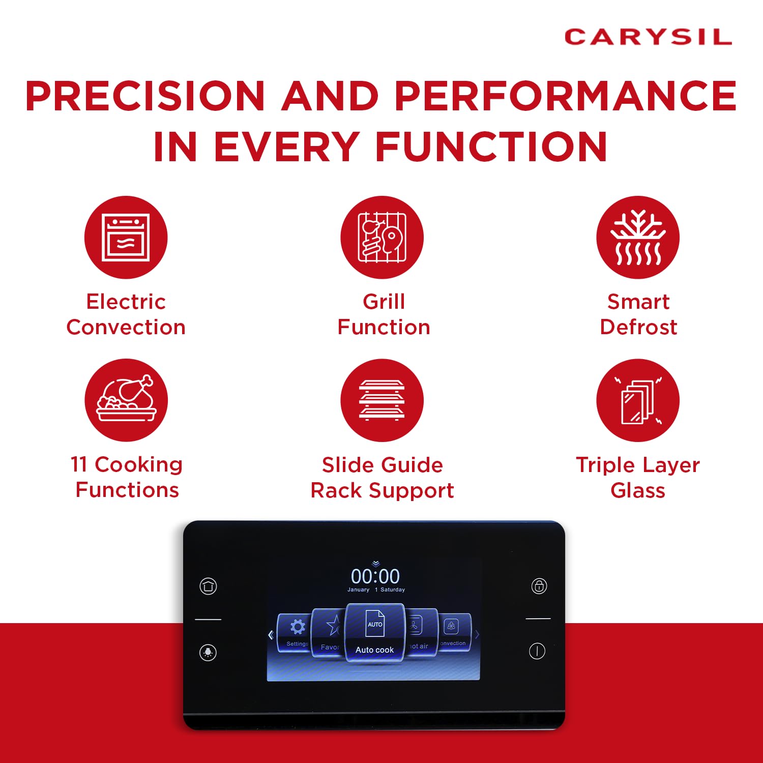 The Carysil Built-in Oven comes with an A-energy rating, ensuring high energy efficiency while delivering consistent cooking performance. Enjoy lower electricity consumption, without compromising on power or results.