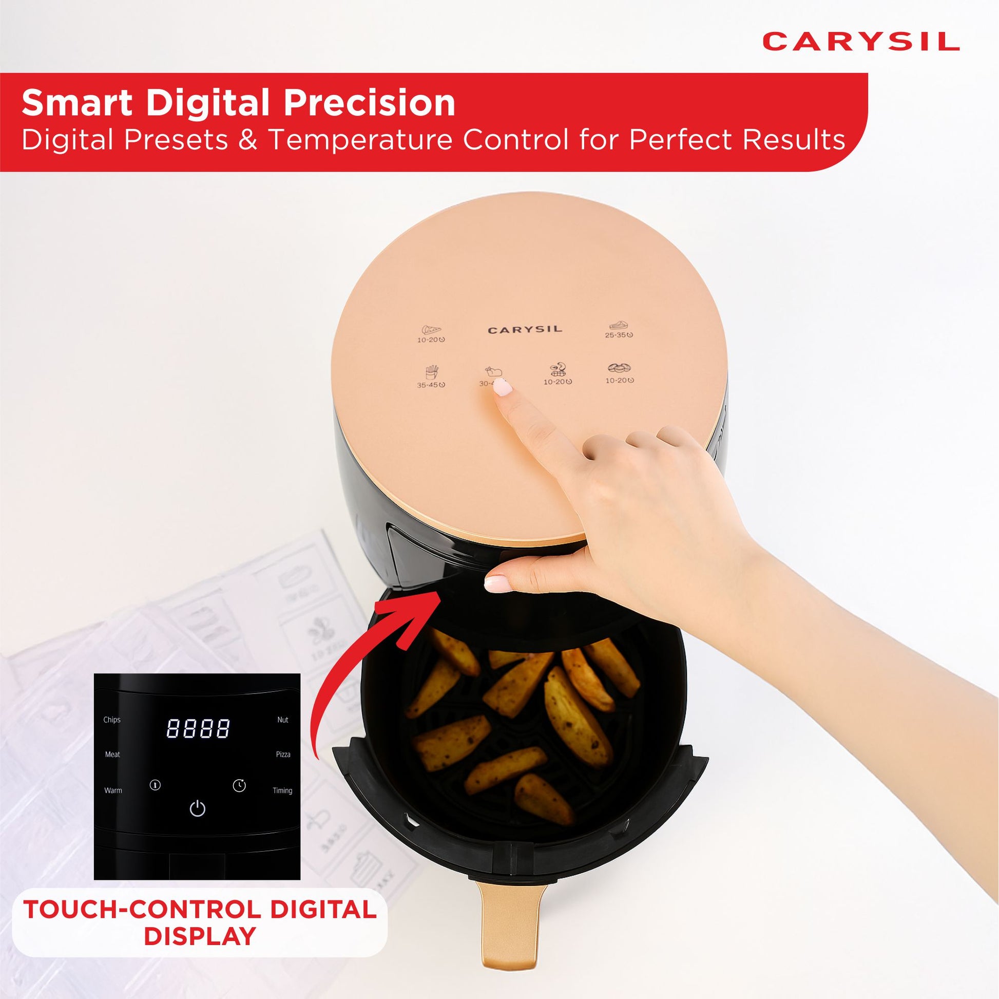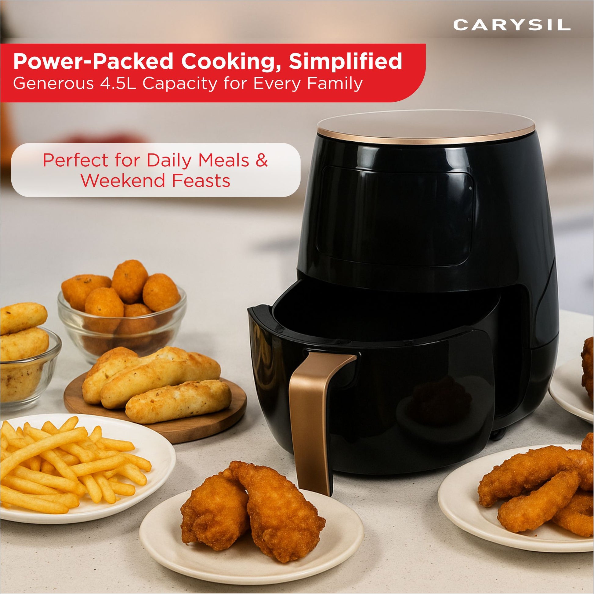 Perfect for families or meal prepping, the generous 4.5 L capacity allows you to cook larger portions, making dinner time a breeze with the Carysil air fryer.