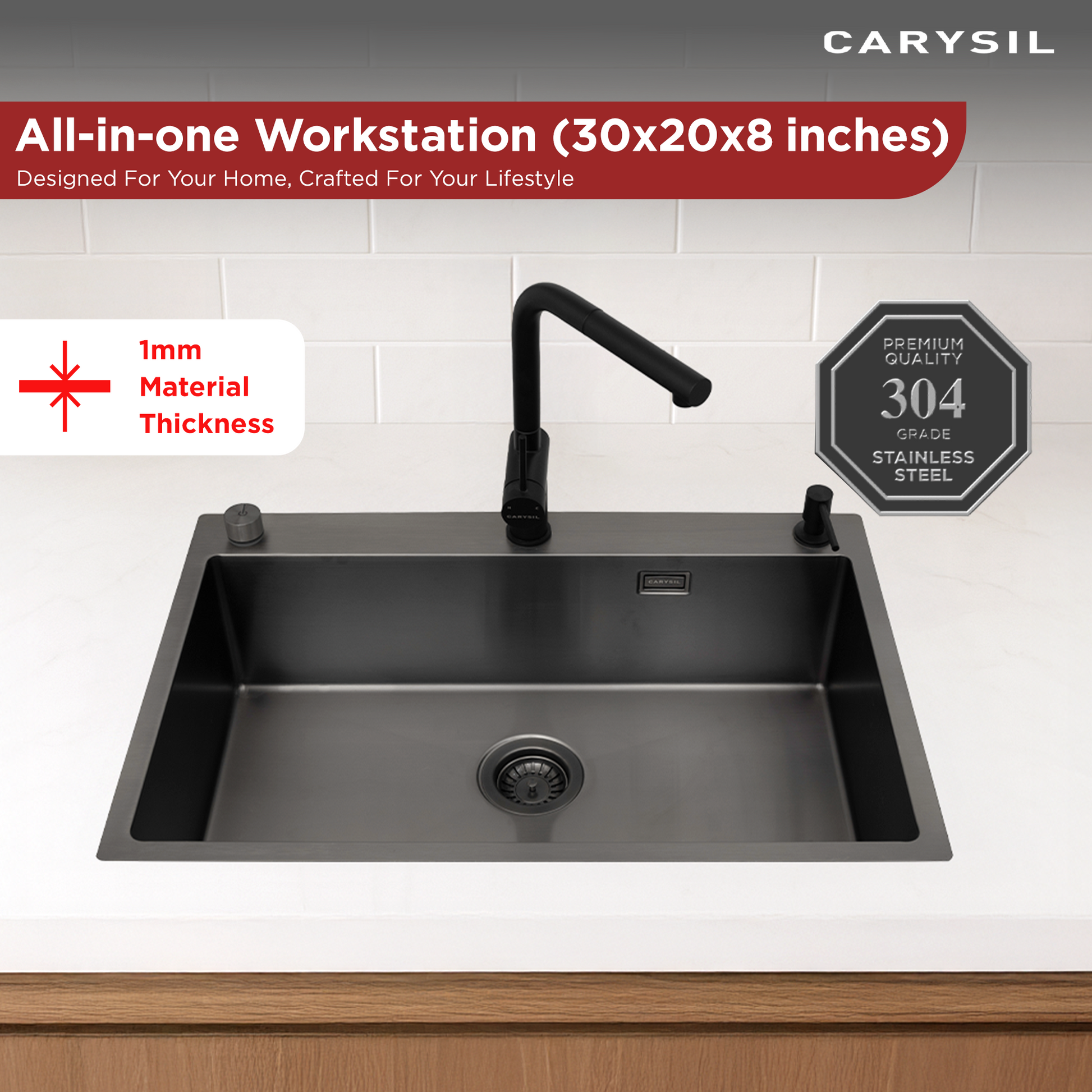 Crafted from 304-grade stainless steel with a 1 mm thickness, this workstation sink ensures exceptional durability and long-lasting performance, making it a reliable choice for your kitchen.