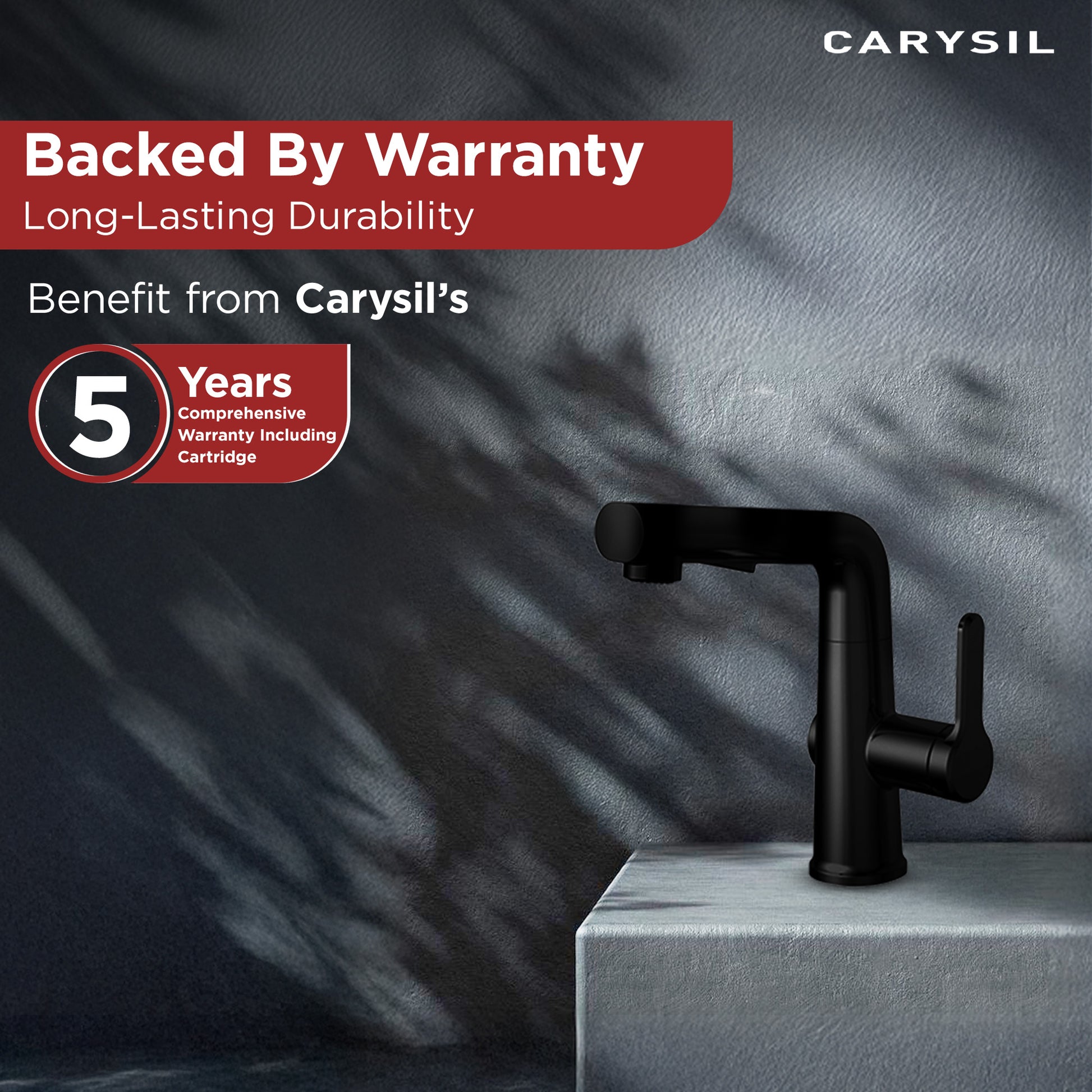The Carysil kitchen sink faucet comes with a 5-year faucet warranty including cartridge, effective from the date of purchase, ensuring peace of mind and reliability for your kitchen investment.