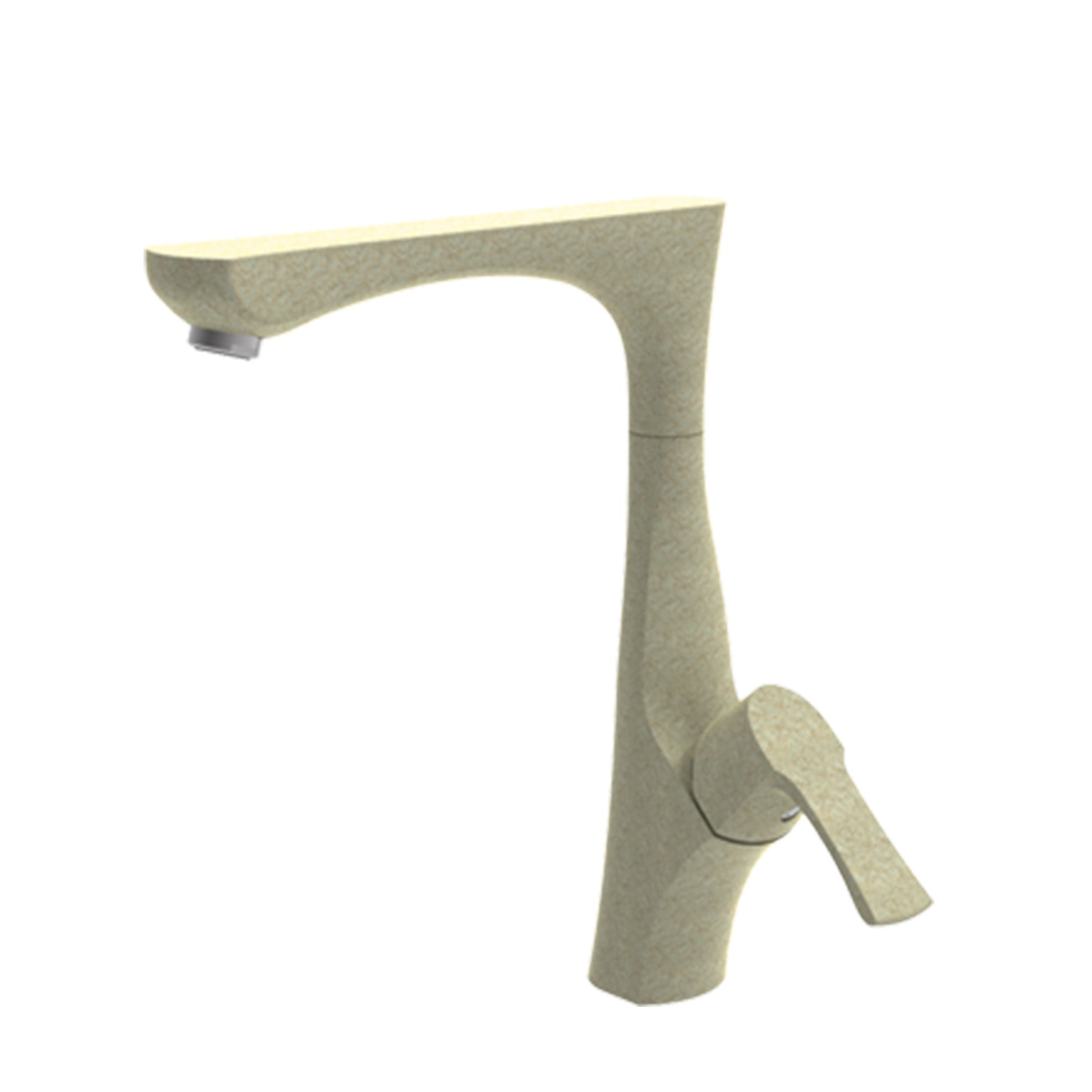 The Carysil faucet features intuitive single-lever operation for hot and cold water, enabling easy adjustment of water flow and temperature with a single smooth motion.