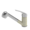 The Carysil faucet features intuitive single-lever operation for hot and cold water, enabling easy adjustment of water flow and temperature with a single smooth motion.