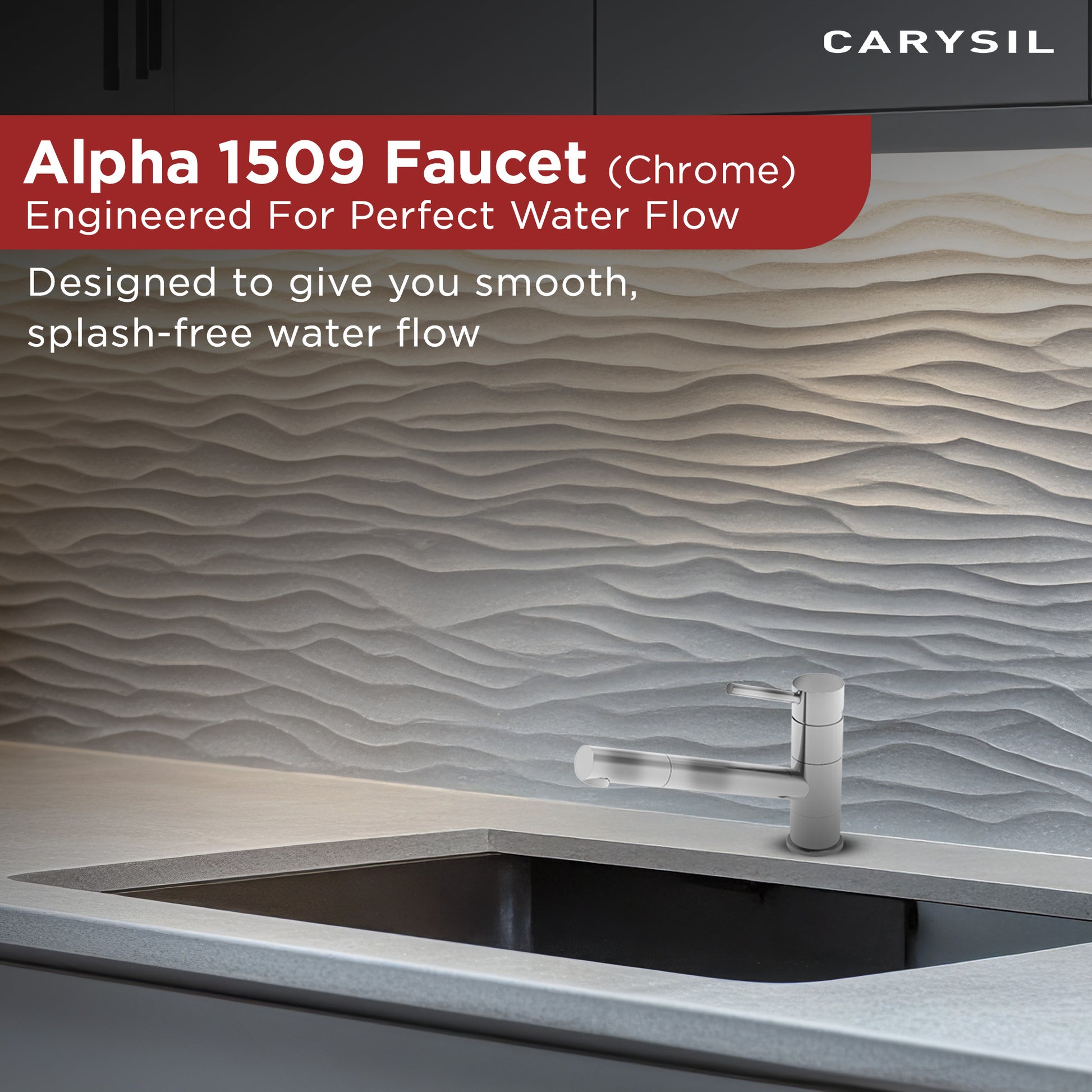 The Carysil faucet features intuitive single-lever operation for hot and cold water, enabling easy adjustment of water flow and temperature with a single smooth motion.