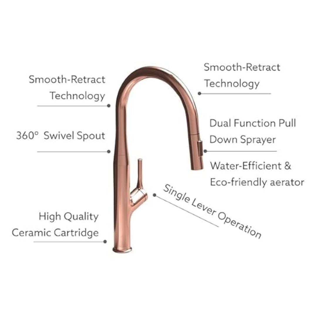 Specifically designed to perform reliably under Indian water conditions, this faucet withstands hard water, frequent use, and fluctuating pressure—ensuring long-term durability and efficiency in everyday kitchen tasks.