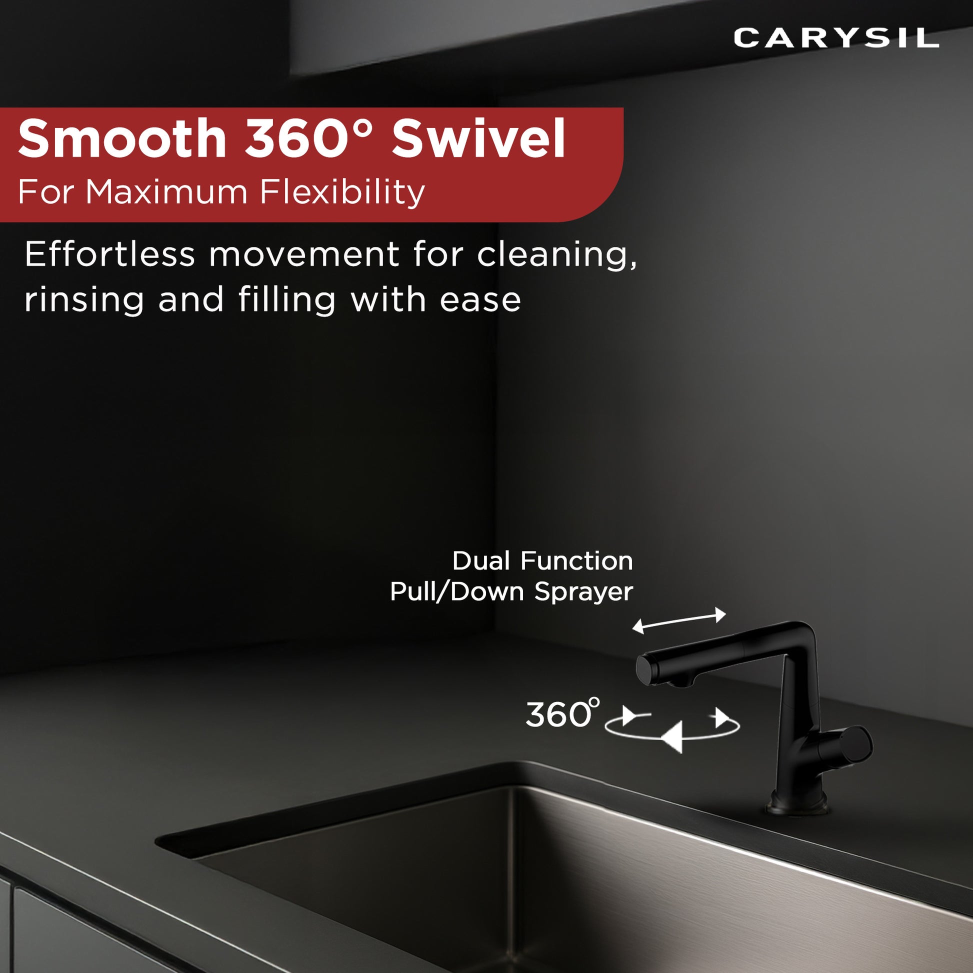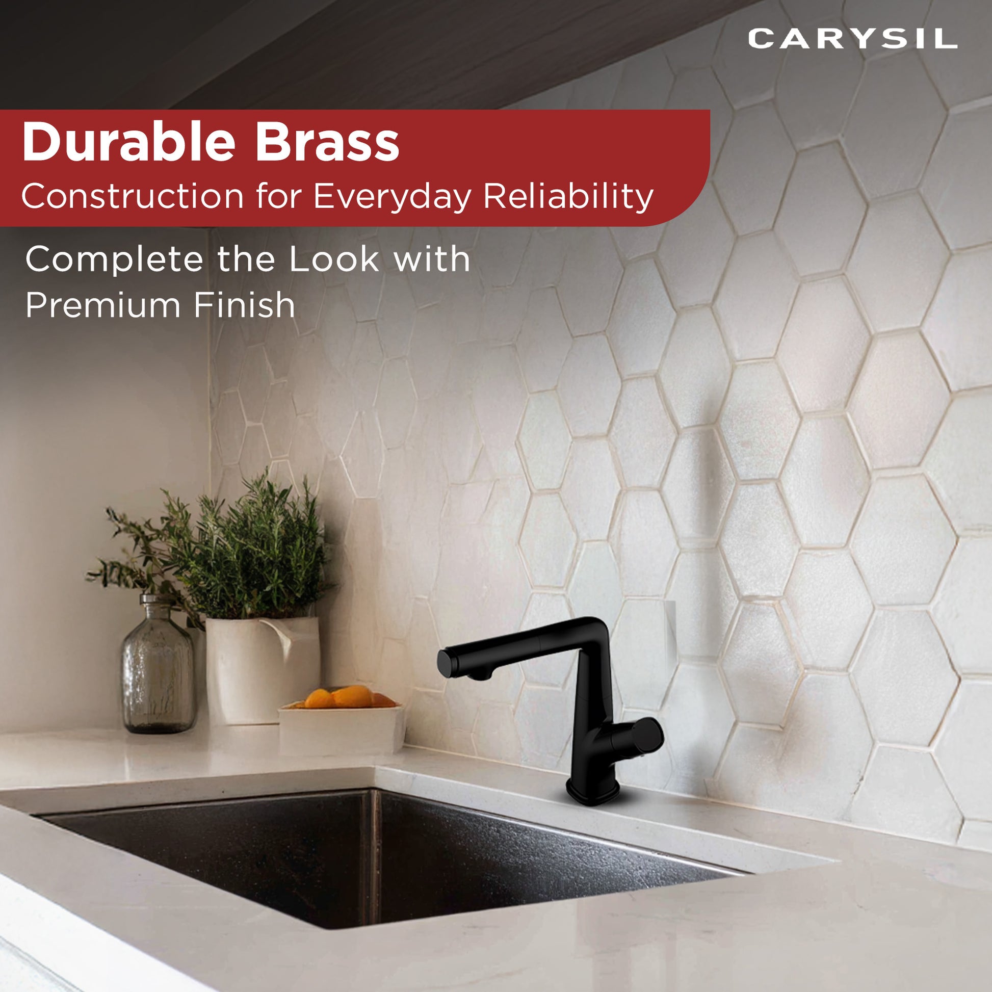 Built to last, the Carysil Alpha04 kitchen faucet is made from high-quality solid brass, ensuring long-term durability and resistance to wear and tear.