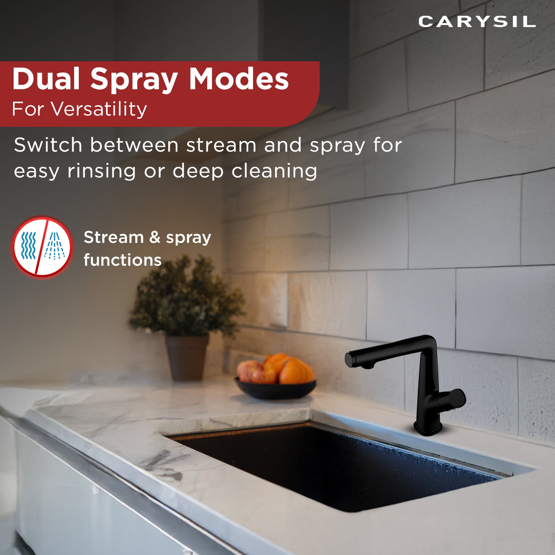 The Carysil kitchen sink faucet comes with a 5-year faucet warranty including cartridge, effective from the date of purchase, ensuring peace of mind and reliability for your kitchen investment.