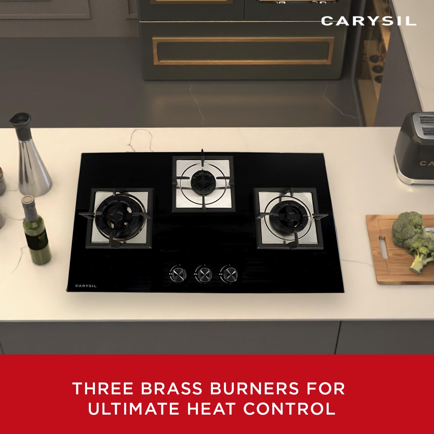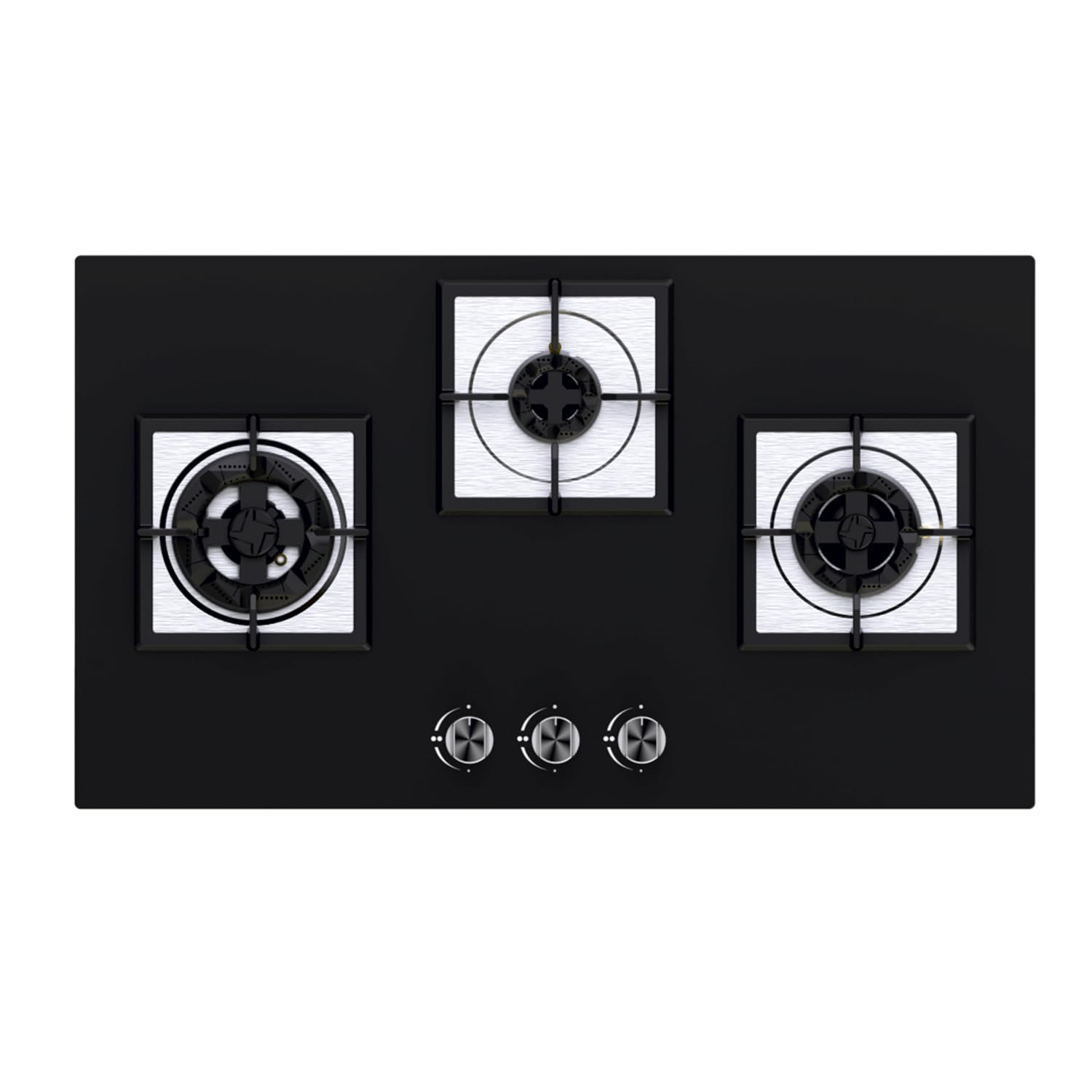 The built-in hob features 3 brass burners for high-speed heat, delicate simmering and adjustable heat spread. It includes 1 big triple ring burner, 1 mini triple ring burner and 1 dual ring burner. This setup ensures even heat distribution, precise temperature control, making your kitchen tasks faster, easier, and more efficient.