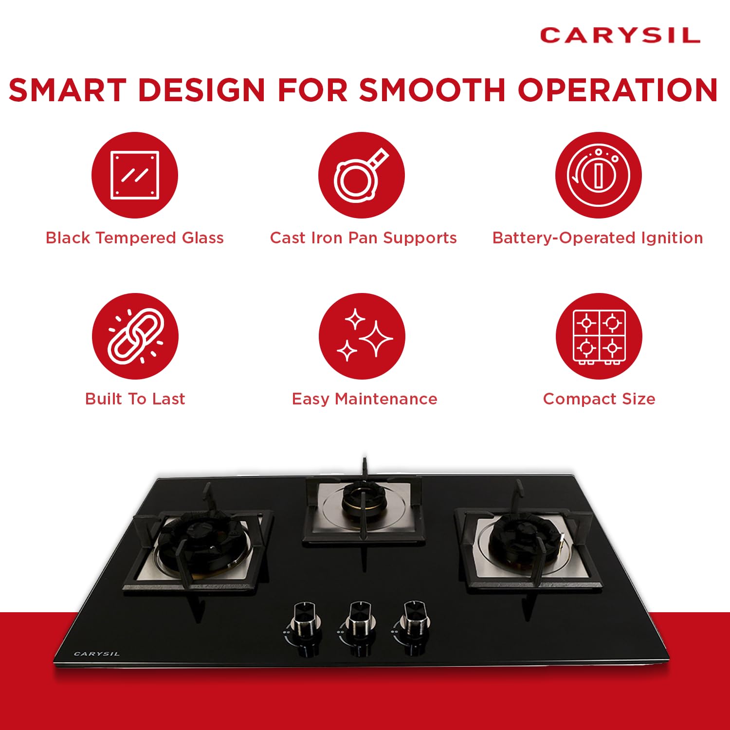 The Carysil built-in hob comes with a 2-year manufacturer warranty, effective from the date of purchase, ensuring peace of mind and reliability for your kitchen investment.