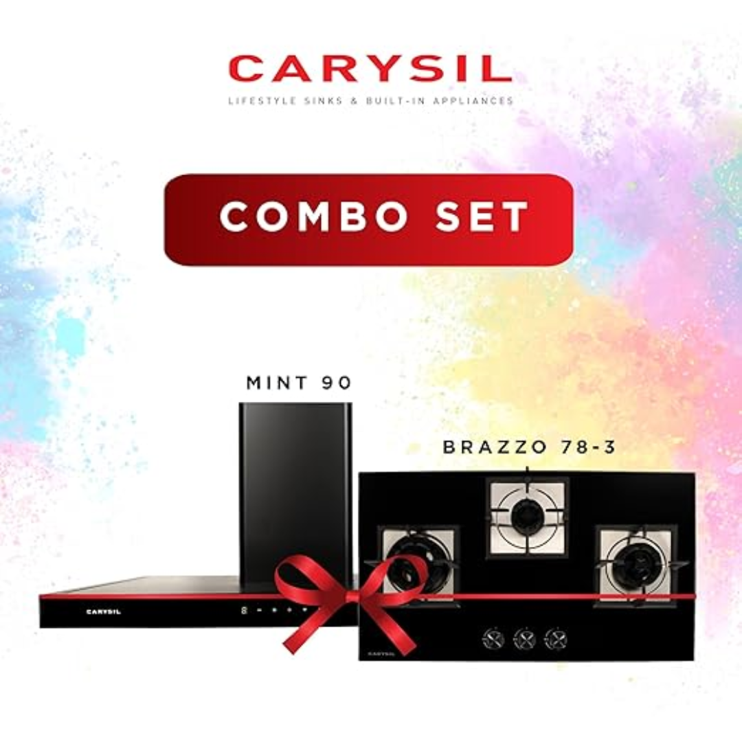 Carysil Brazzo 78 CM 3 Burner Built-in Kitchen Hob and Mint 90 CM Chimney Combo Set