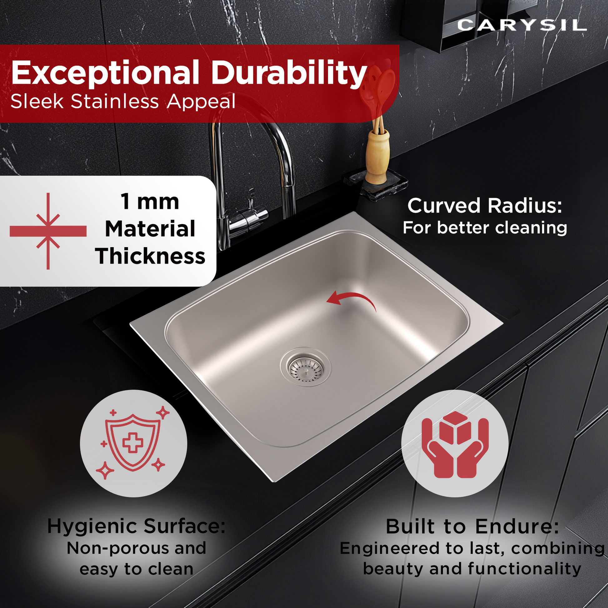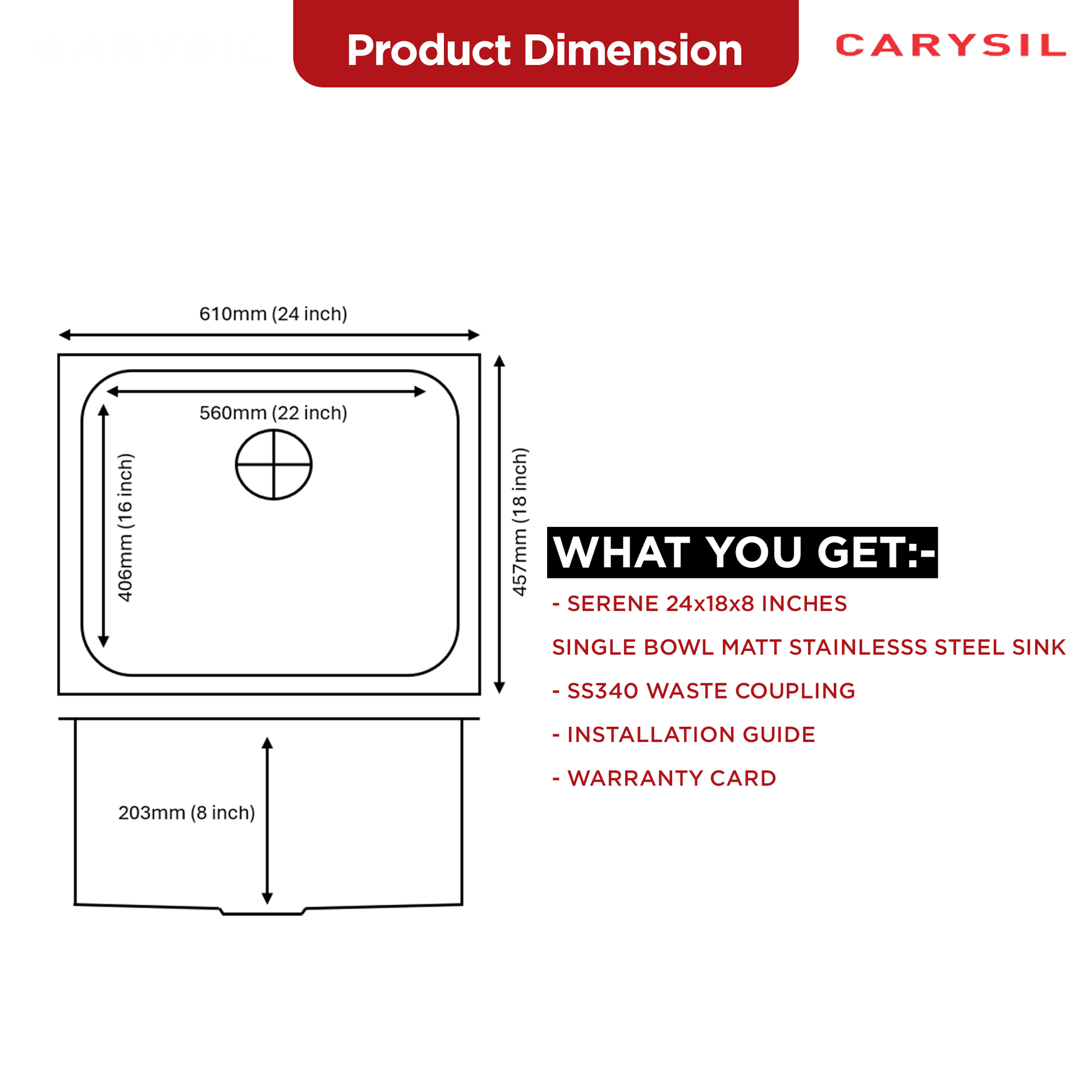 The Carysil stainless steel kitchen sink comes with a 7-year manufacturer warranty, effective from the date of purchase, ensuring peace of mind and reliability for your kitchen investment.