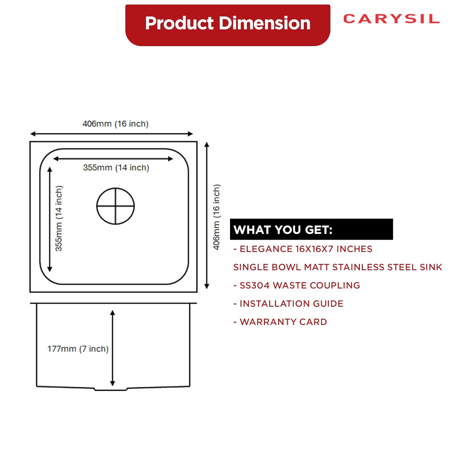 For any assistance, you can reach us on our toll-free number at 1800 123 12 8833 or contact us via WhatsApp at +91 75069 90911. You may also drop us an email at hello@carysil.com, and our team will assist you. We’re happy to help with any inquiries or support needs related to your Carysil stainless steel kitchen sink. Please note that Installations, Services & Accessories will be chargeable as per Service Policy.