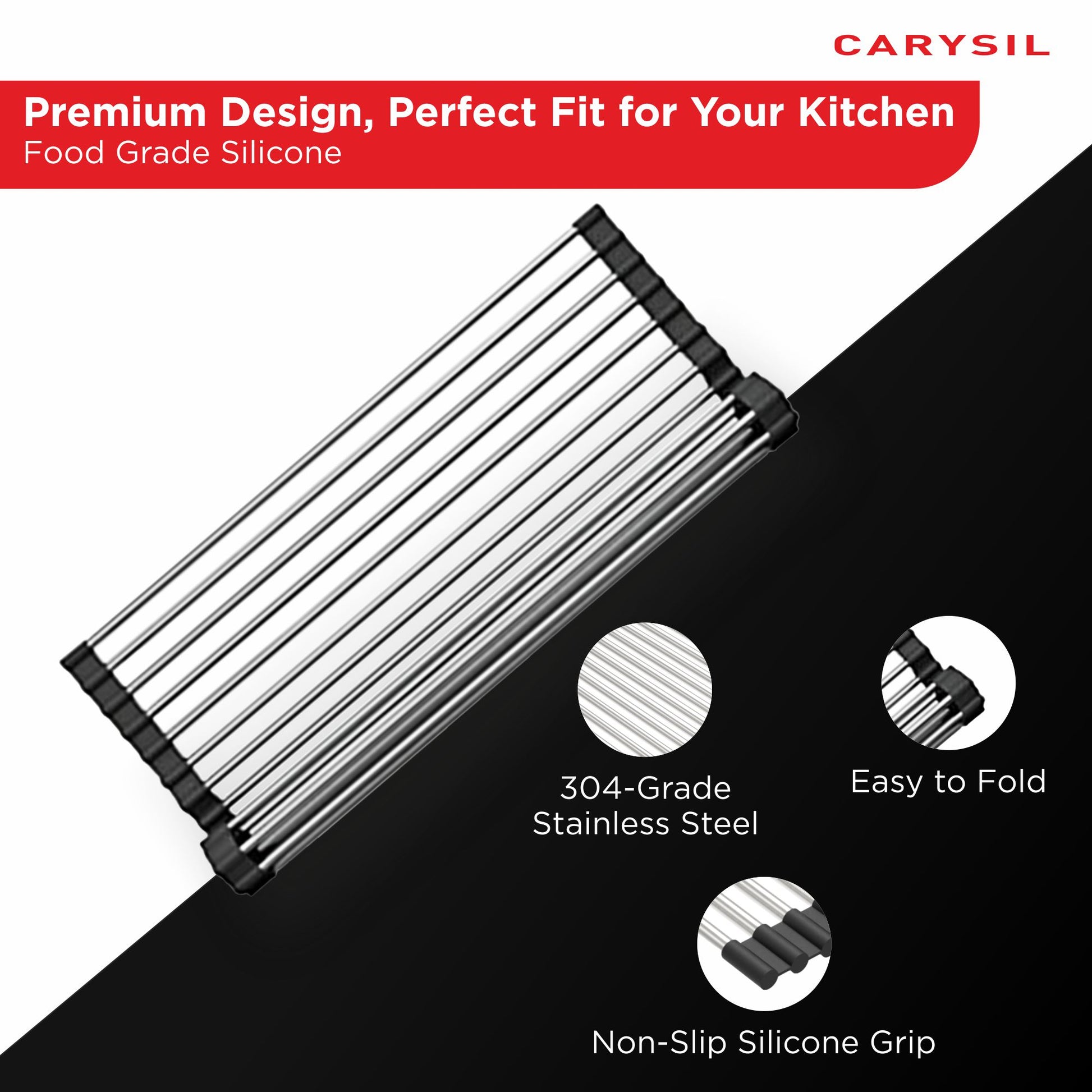 Carysil Fold Mat Roll Up Dish Drying Rack for Kitchen Sink, Multipurpose Stainless Steel Drainer, Heat Resistant, Anti-Slip, Anti-Rust, Space-Saving Drying Foldable Mat, 36.8x2.6x1.4 cm
