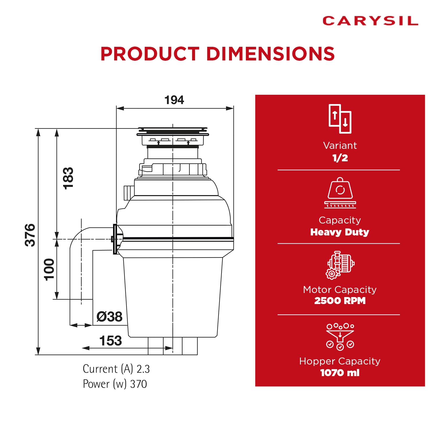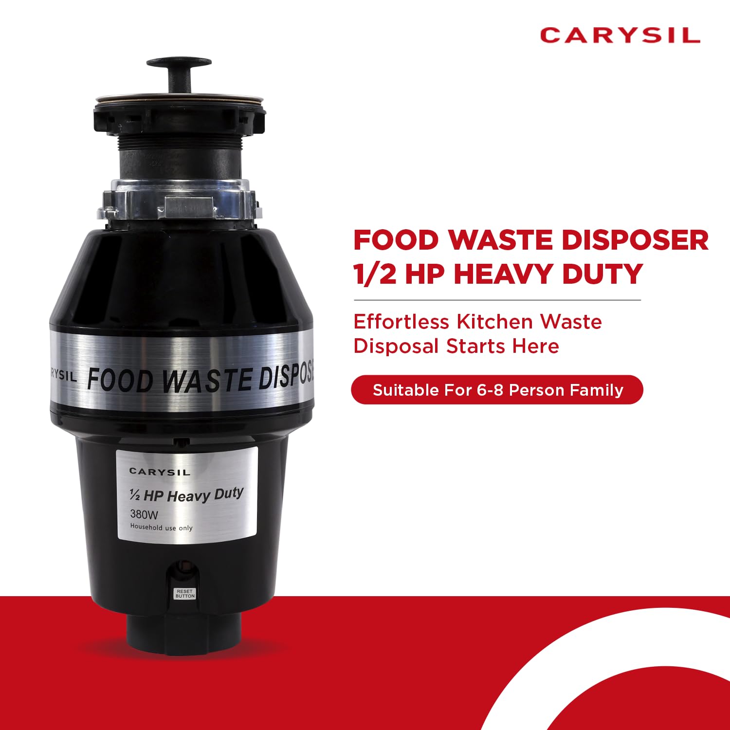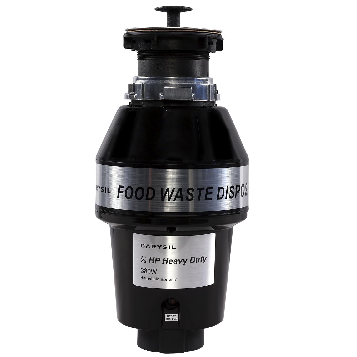 Carysil Food Waste Disposer for Home Sink, 1/2 HP Heavy Duty, Ideal for 5-7 Person Family, Powerful 2500 RPM DC Motor with Low Noise, Corrosion-Proof & Stainless Steel Grinding Components, Fits Under The Kitchen Sink, Black