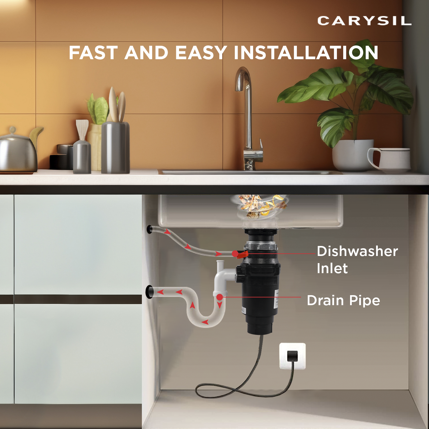 Demo and installation of the food waste disposer will be carried out by a Carysil representative at an additional charge of ₹850/- to ensure proper setup. For any assistance, you can reach us on our toll-free number at 1800 123 12 8833 or contact us via WhatsApp at +91 75069 90911. You may also drop us an email at hello@carysil.com, and our team will be happy to help you.