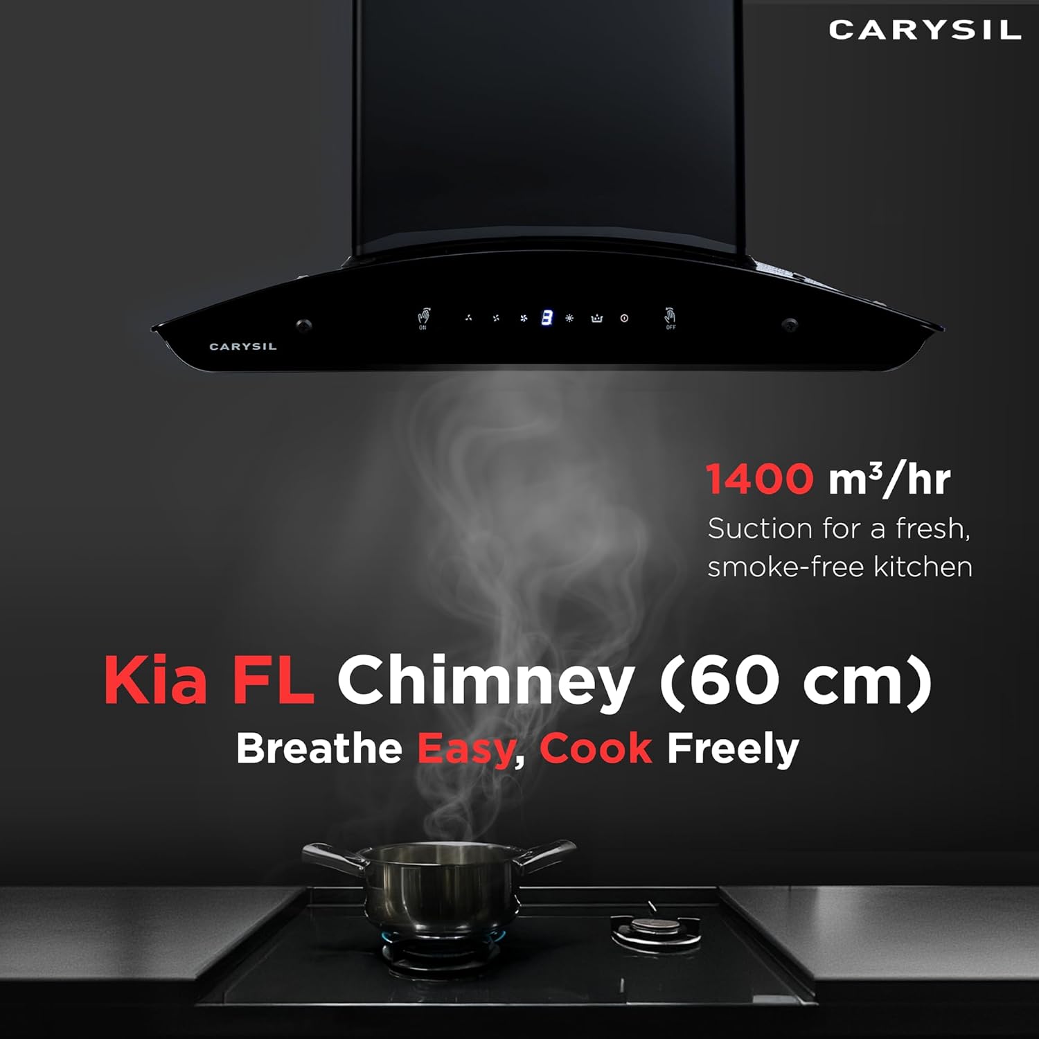 It comes with a powerful suction capacity of 1400 m³/hr that helps your kitchen stay fresh, low on maintenance, less noisy, and energy-efficient. This makes it one of the ideal kitchen chimneys