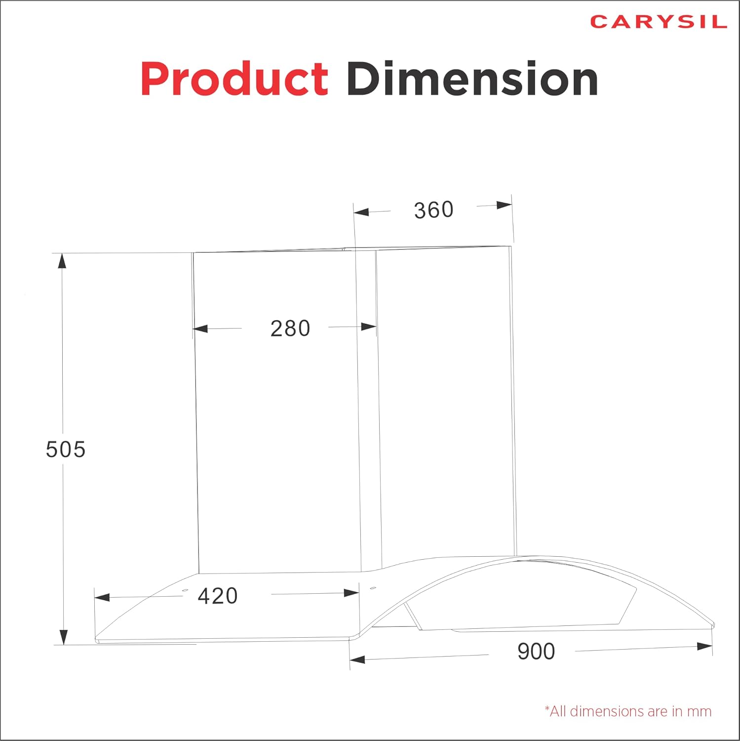 Carysil Kia FL 90 cm Kitchen Chimney, Curved Shape, 1400 m³/hr Suction Capacity, Filterless, Heat Auto Clean, 3-Speed Motion Sensor, Oil Collector, LED Lamp, 7-year Motor Warranty