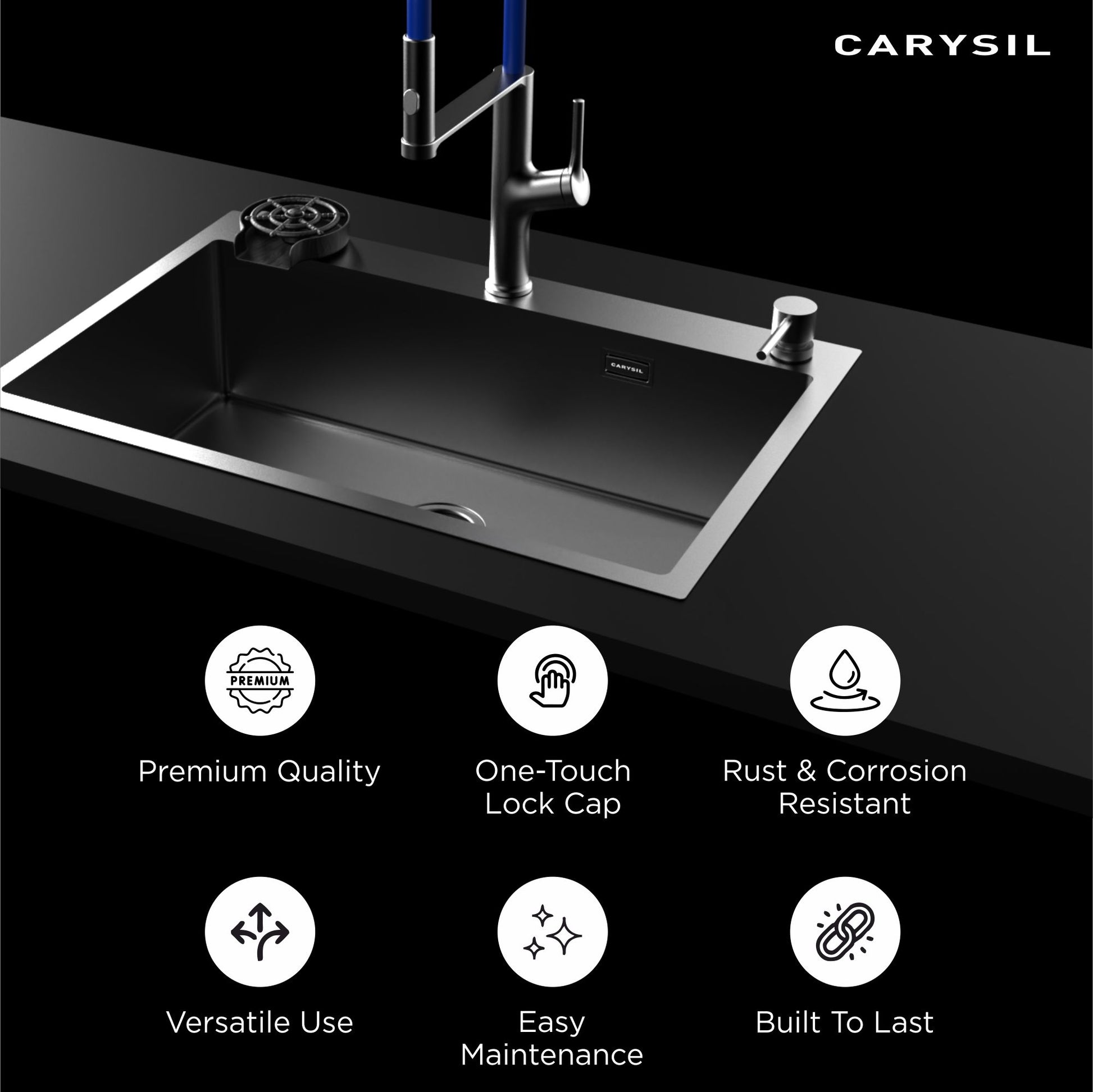 The soap dispenser comes with a 2-year warranty against manufacturing defects, effective from the date of purchase, ensuring long-lasting reliability and peace of mind. For assistance, contact us via Toll-Free: 1800 123 12 8833, WhatsApp: +91 75069 90911, or Email: hello@carysil.com.