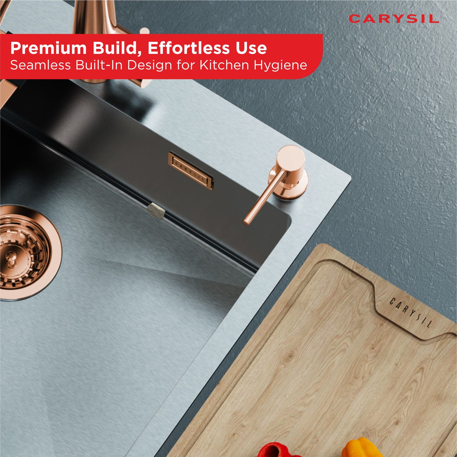 A compact, integrated solution that reduces countertop mess while offering quick soap access. An essential and stylish addition to any modern kitchen.