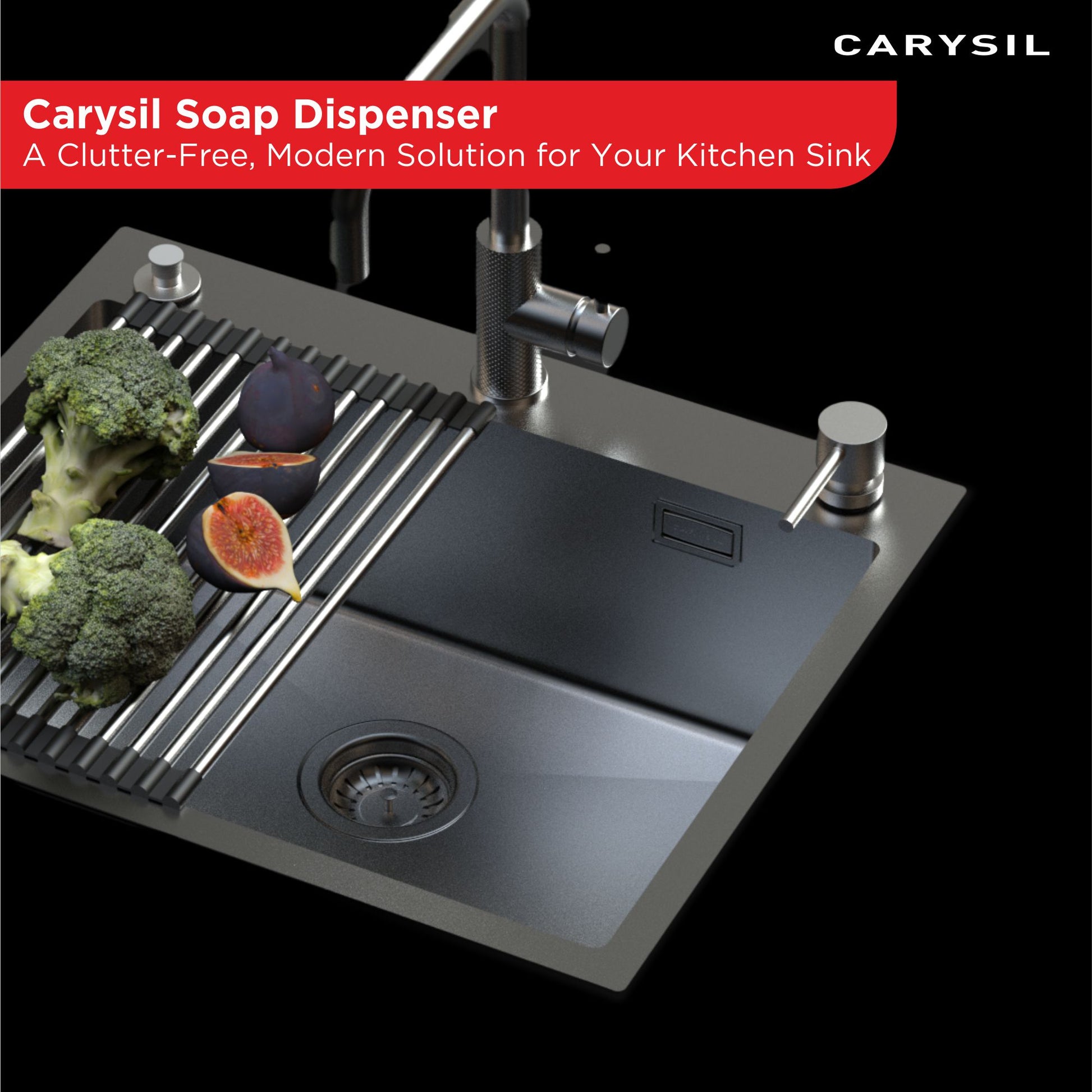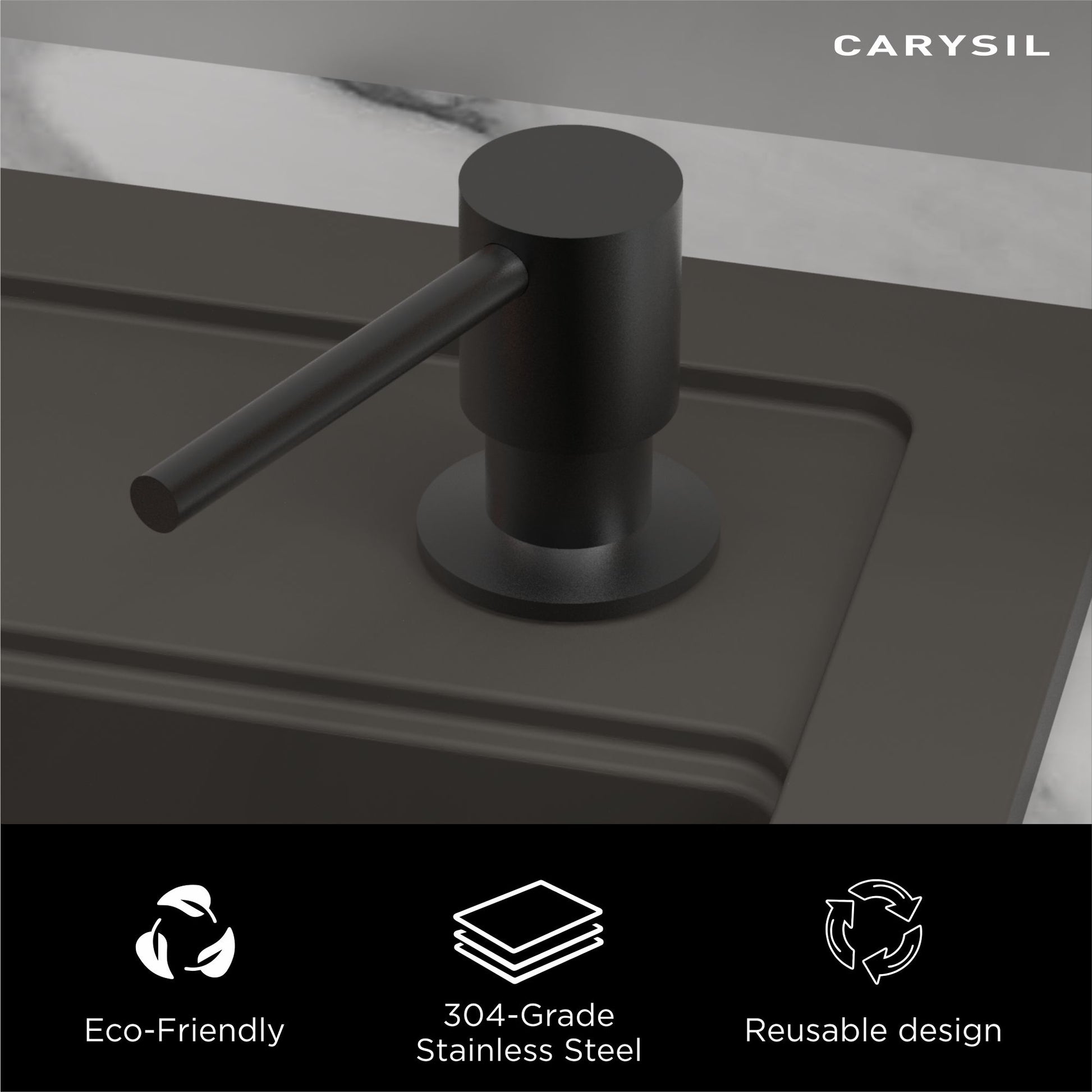 Designed for a clean, integrated installation directly beside the kitchen sink. Keeps soap easily accessible while maximizing countertop space.