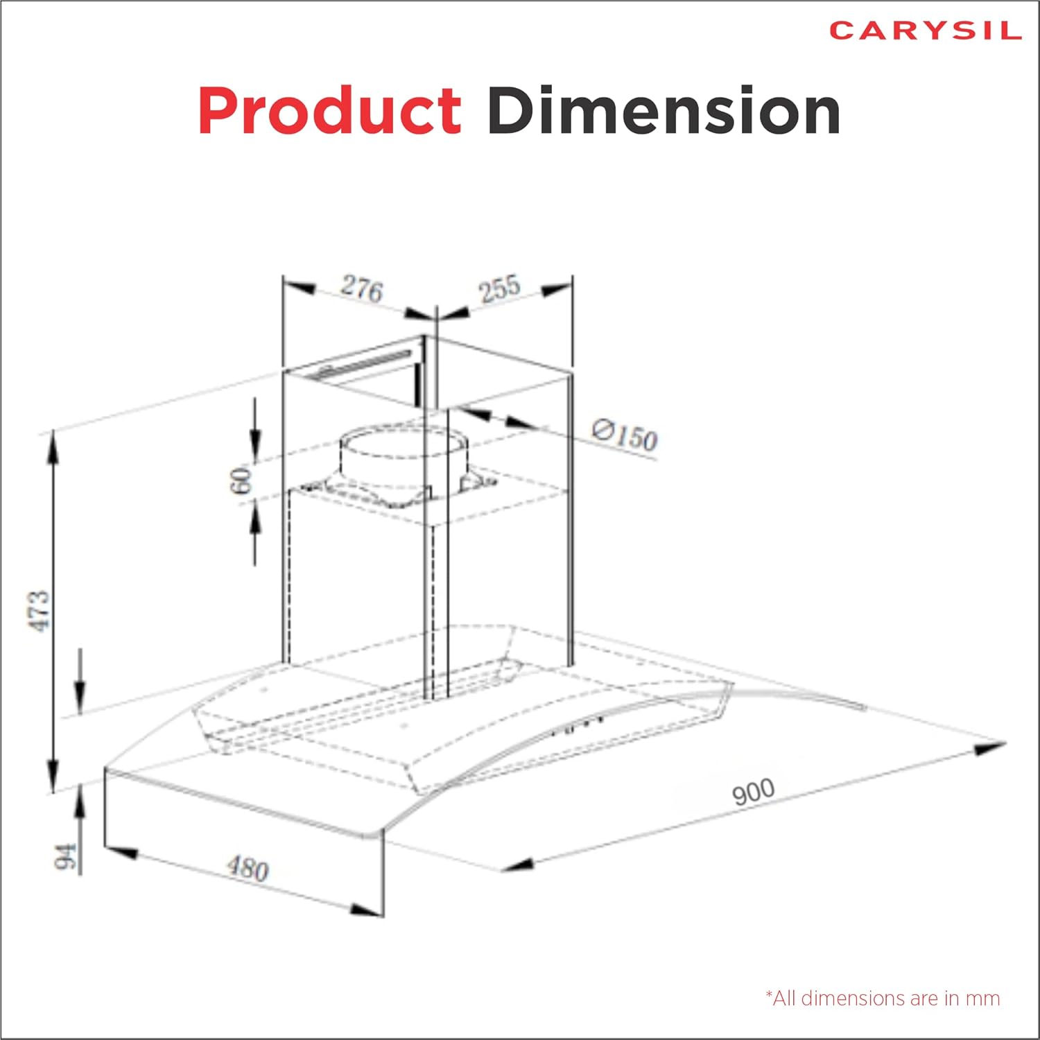 Demo and installation of the chimney will be carried out by a Carysil representative for proper setup at a charge of ₹800/-. For any assistance, you can contact us via Toll-Free Number: 1800 123 12 8833, WhatsApp: +91 75069 90911, or Email: hello@carysil.com.
