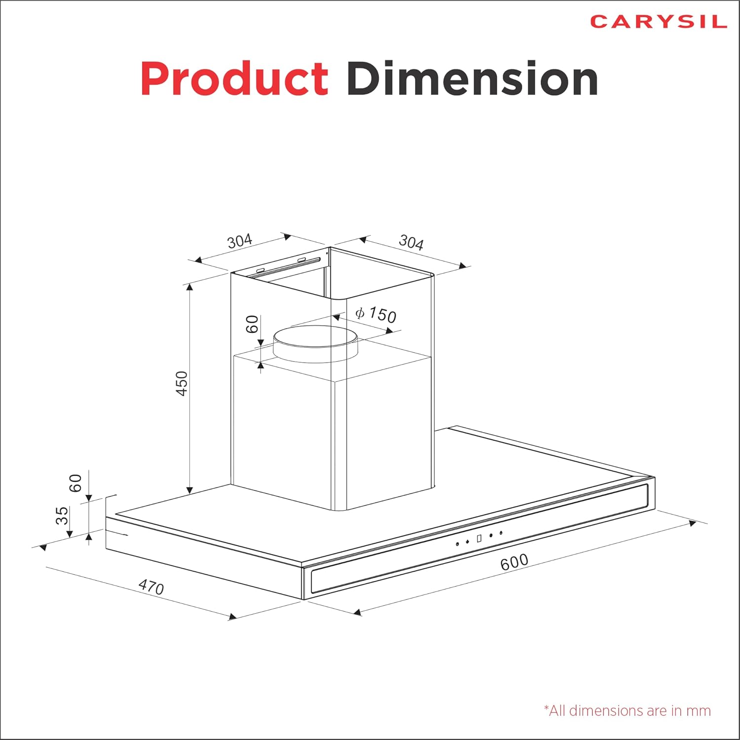 Demo and installation of the chimney will be carried out by a Carysil representative for proper setup at a charge of ₹800/-. For any assistance, you can contact us via Toll-Free Number: 1800 123 12 8833, WhatsApp: +91 75069 90911, or Email: hello@carysil.com.