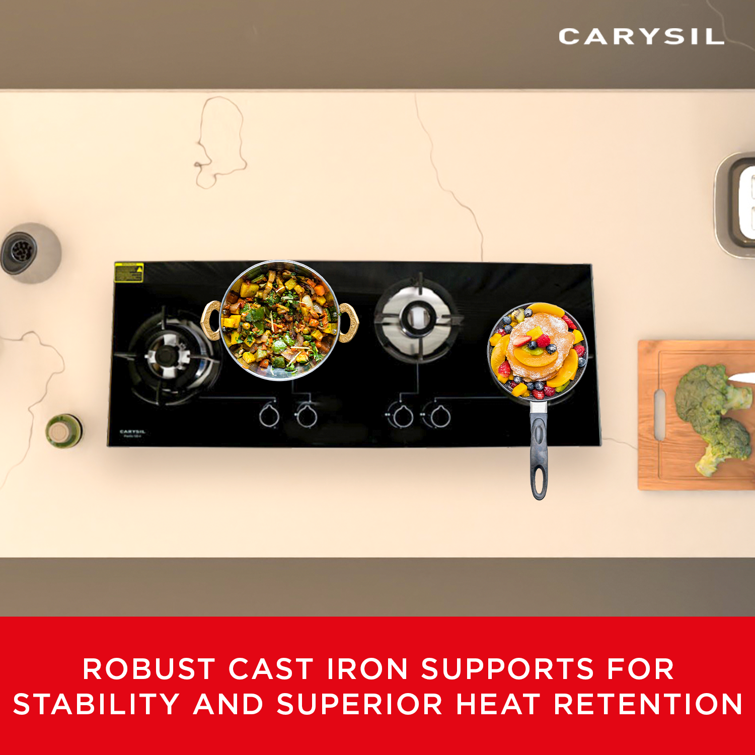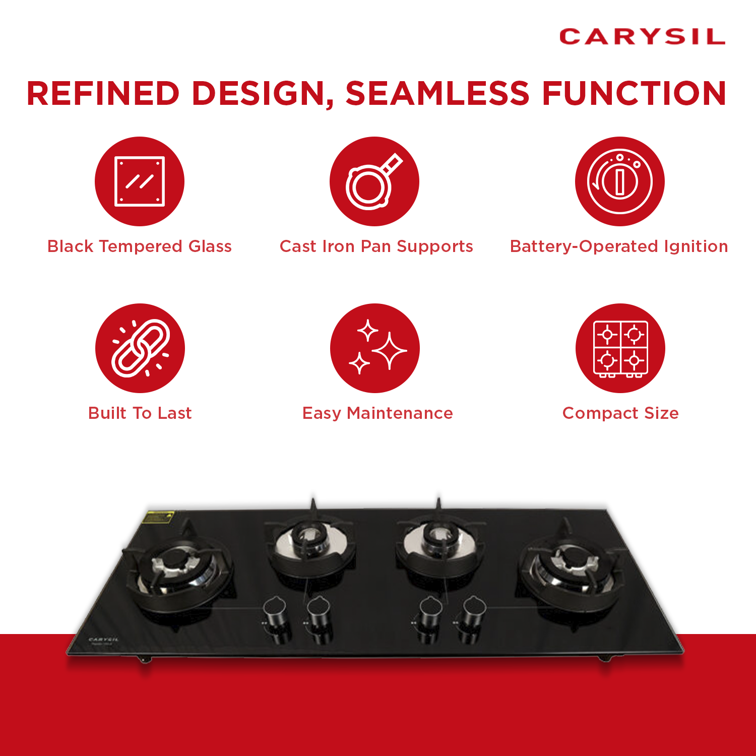 The Carysil built-in hob comes with a 2-year manufacturer warranty, effective from the date of purchase, ensuring peace of mind and reliability for your kitchen investment.
