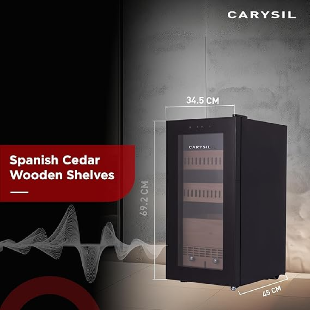 The Cigar Humidor maintains a consistent temperature range of 18-22°C (64-72°F), ideal for preserving cigar freshness. The advanced cooling system ensures your cigars are kept at the perfect temperature with minimal fluctuation.