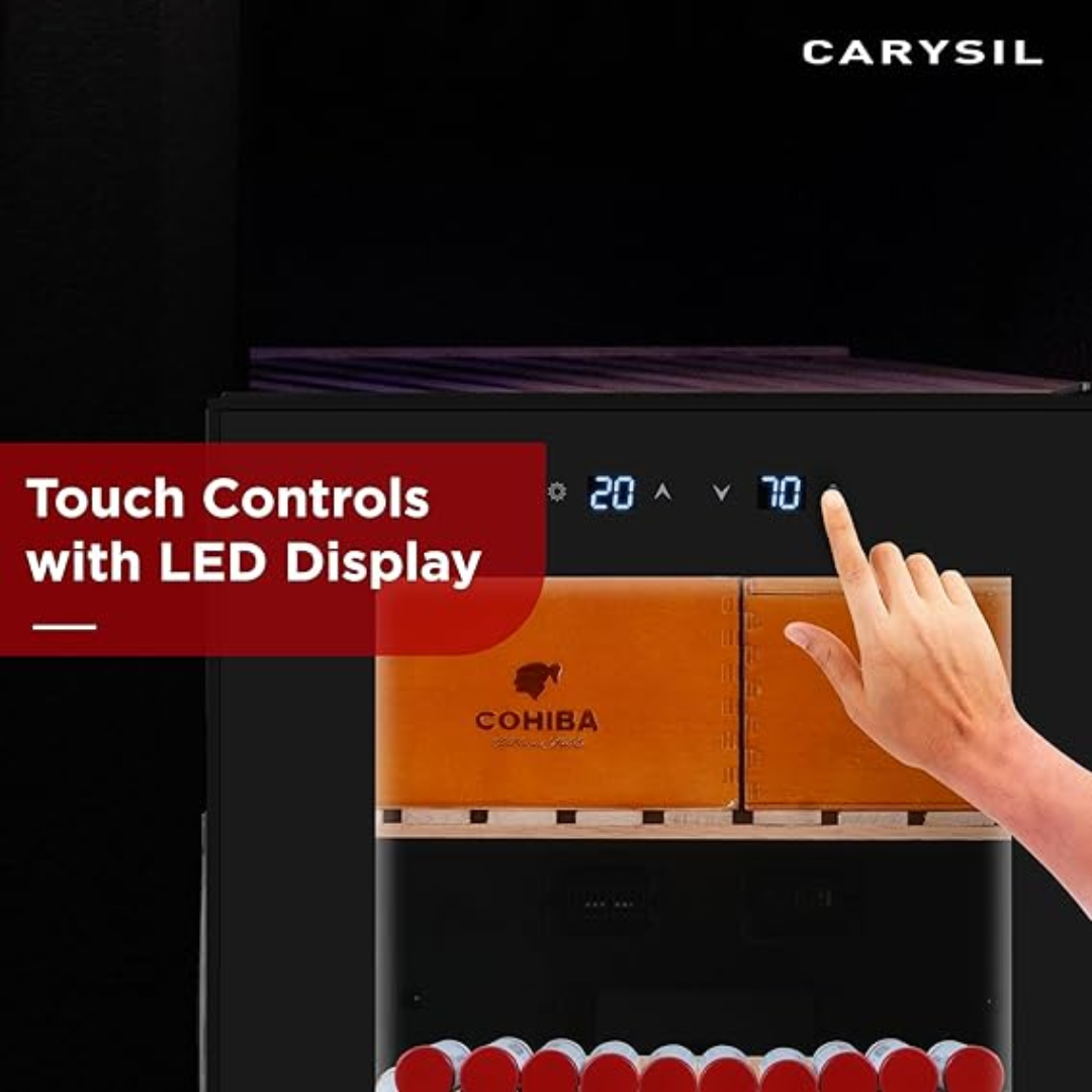 Convenient smart touch screen control with an LED display for easy temperature and humidity adjustments. The soft, gentle interior LED light provides a refined ambiance while ensuring cigars are not exposed to excessive light.