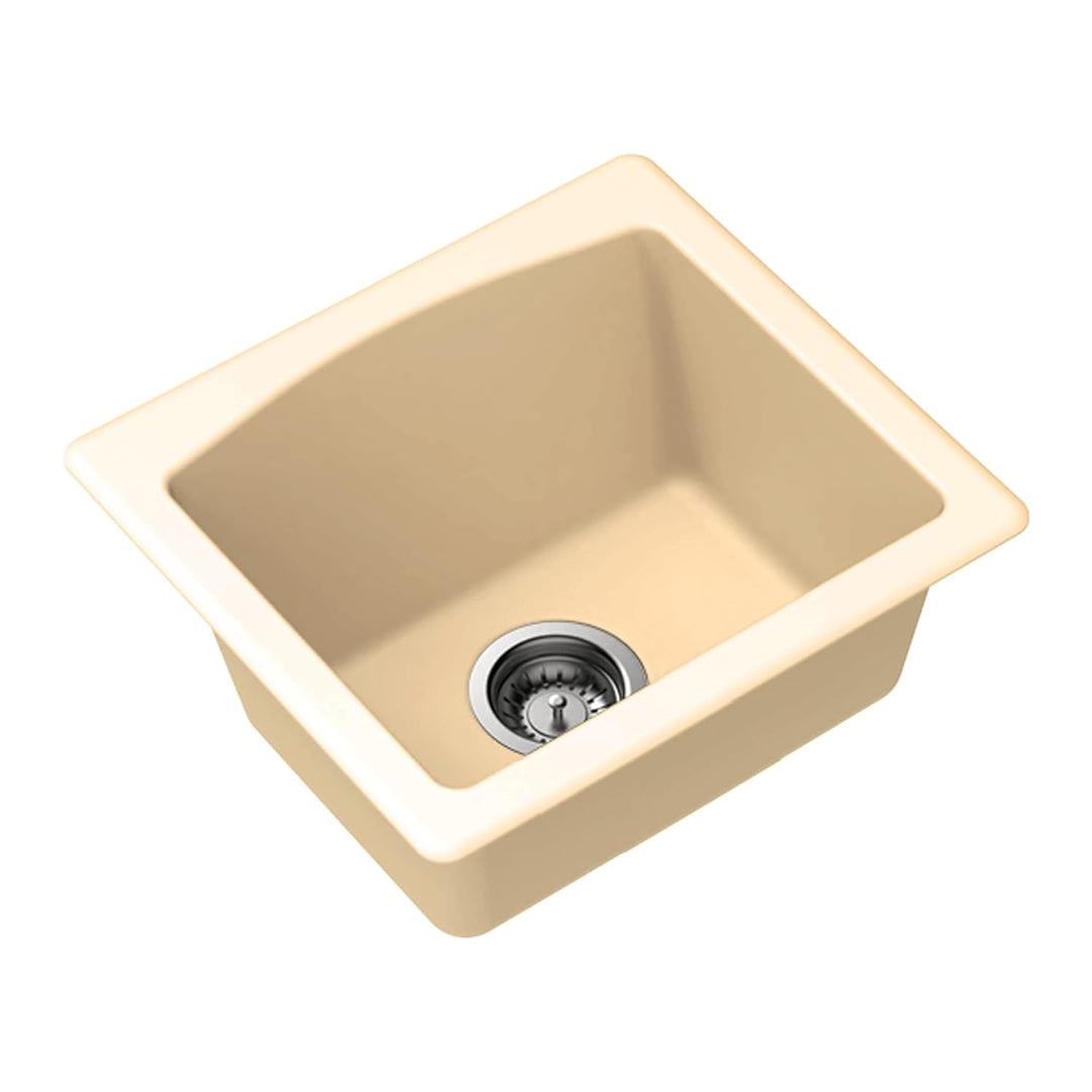 Carysil Quartz C'est Bon Single Bowl Kitchen Sink, Real Stone Finish, 304 Stainless Steel Coupling, Kitchen Sink with Sloping Drain, Noise Reduction Design, 18x16x8 inches, Champagne