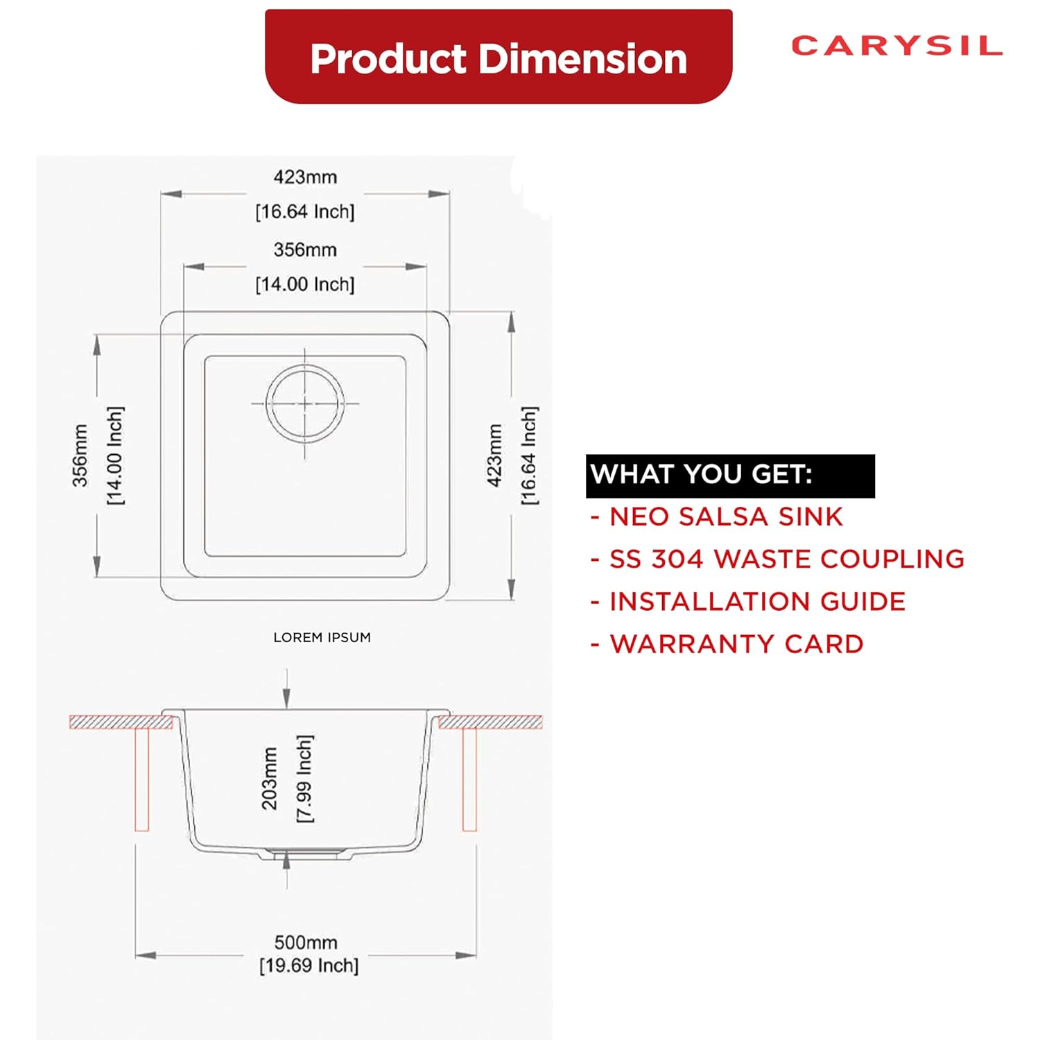 For any assistance, you can reach us on our toll-free number at 1800 123 12 8833 or contact us via WhatsApp at +91 75069 90911. You may also drop us an email at hello@carysil.com, and our team will assist you. We’re happy to help with any inquiries or support needs related to your Carysil quartz kitchen sink. Please note that Installations, Services & Accessories will be chargeable as per Service Policy.