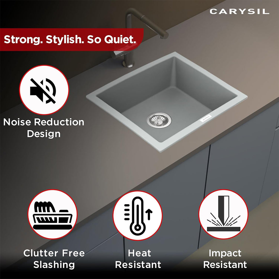 For any assistance, you can reach us on our toll-free number at 1800 123 12 8833 or contact us via WhatsApp at +91 75069 90911. You may also drop us an email at hello@carysil.com, and our team will assist you. We’re happy to help with any inquiries or support needs related to your Carysil quartz kitchen sink. Please note that Installations, Services & Accessories will be chargeable as per Service Policy.