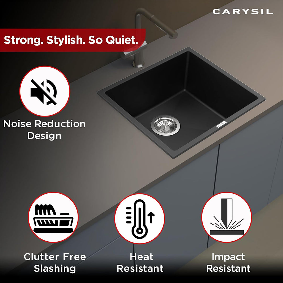 For any assistance, you can reach us on our toll-free number at 1800 123 12 8833 or contact us via WhatsApp at +91 75069 90911. You may also drop us an email at hello@carysil.com, and our team will assist you. We’re happy to help with any inquiries or support needs related to your Carysil quartz kitchen sink. Please note that Installations, Services & Accessories will be chargeable as per Service Policy.