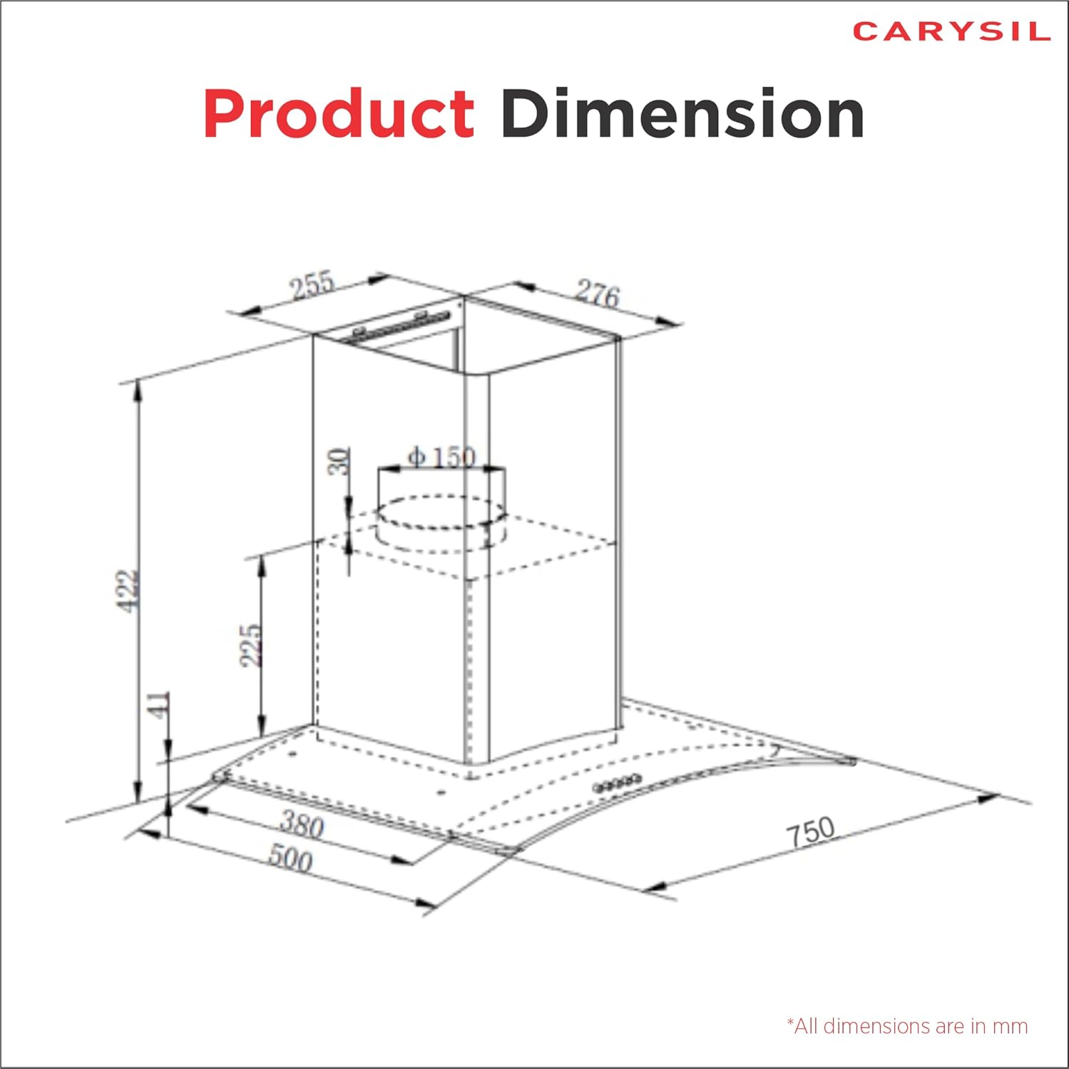 Demo and installation of the chimney will be carried out by a Carysil representative for proper setup at a charge of ₹800/-. For any assistance, you can contact us via Toll-Free Number: 1800 123 12 8833, WhatsApp: +91 75069 90911, or Email: hello@carysil.com.