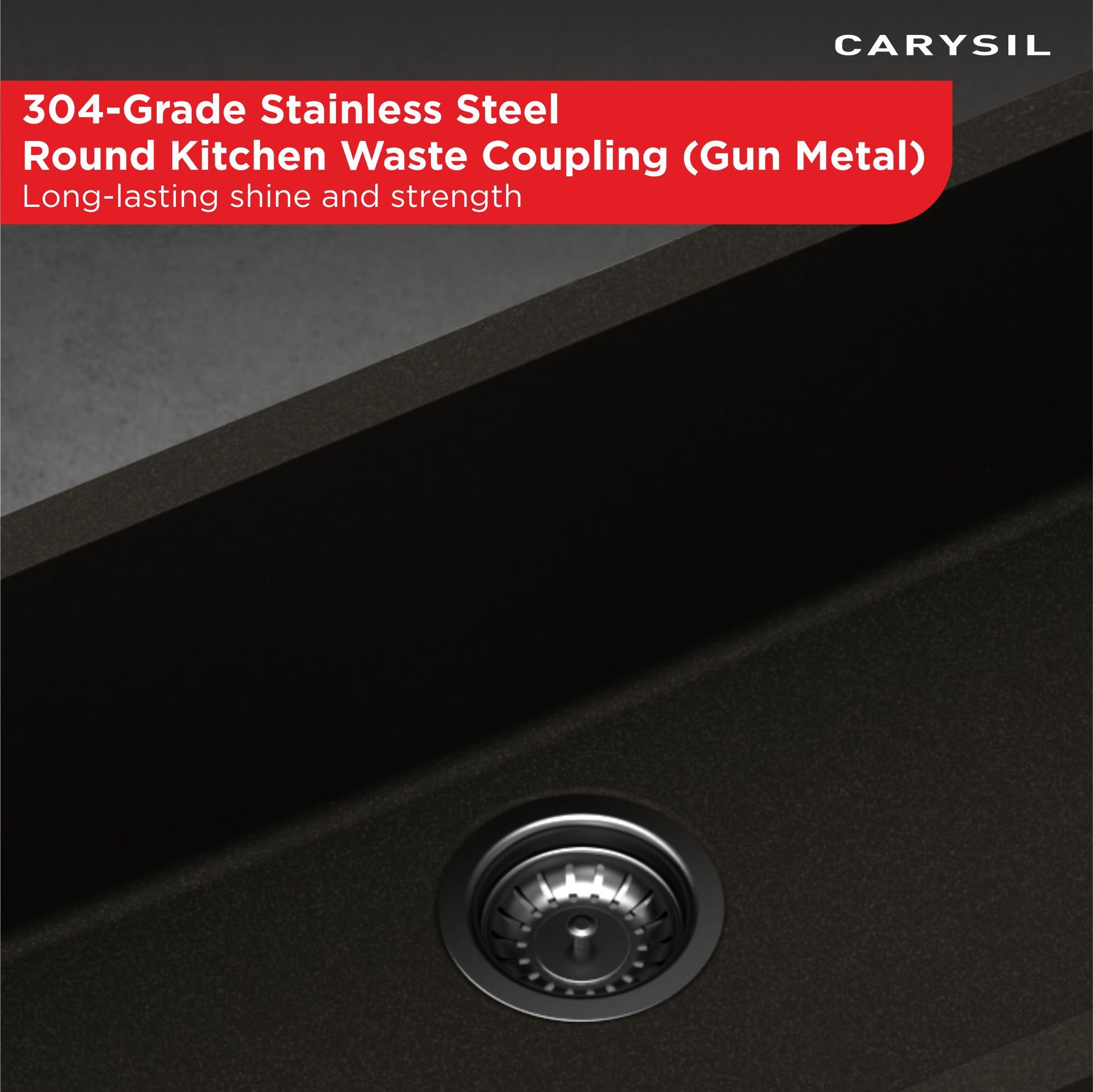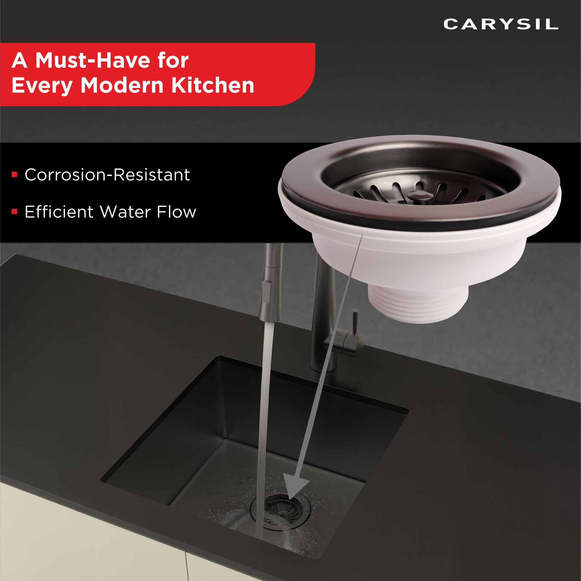 The Carysil waste coupling features a thoughtfully designed removable cap and a detachable stainless steel strainer. This design allows for easy access to clean out any food particles, grease, or debris that might accumulate. Regular cleaning helps maintain the sink's drainage efficiency and ensures better hygiene.