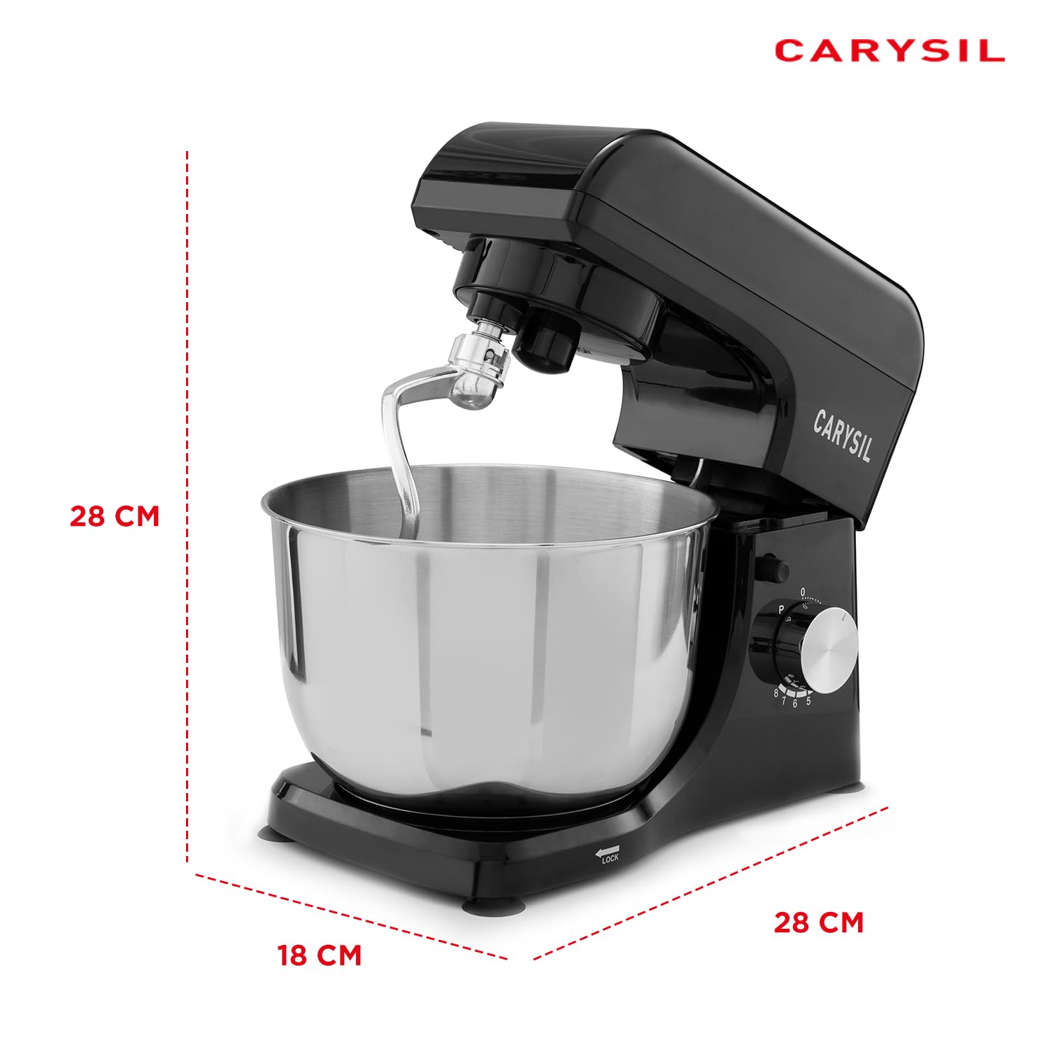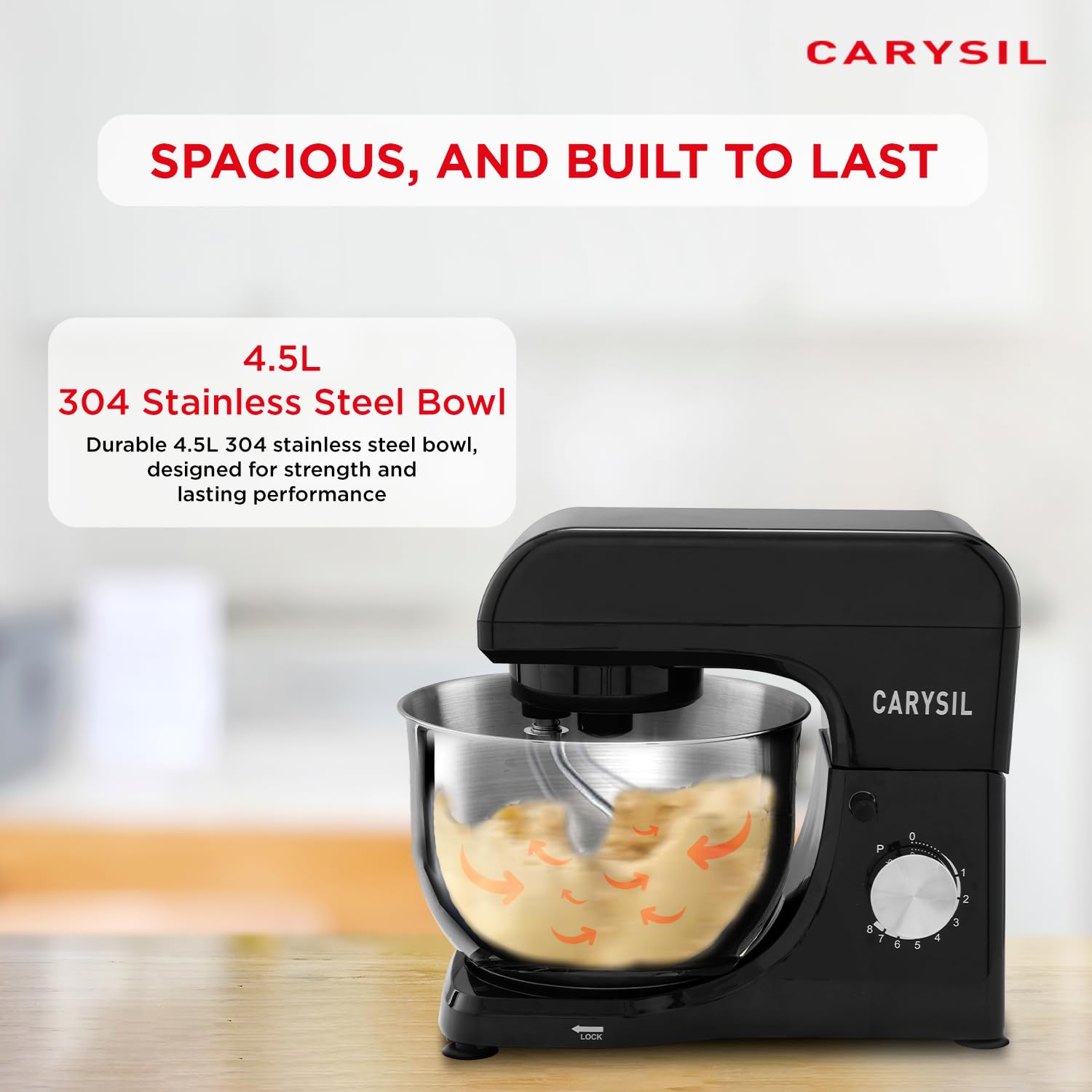 The Carysil Stand Mixer provides exceptional power and torque. This allows for consistent and high performance even with tough mixing tasks such as bread dough, thick batters, and heavy creams.