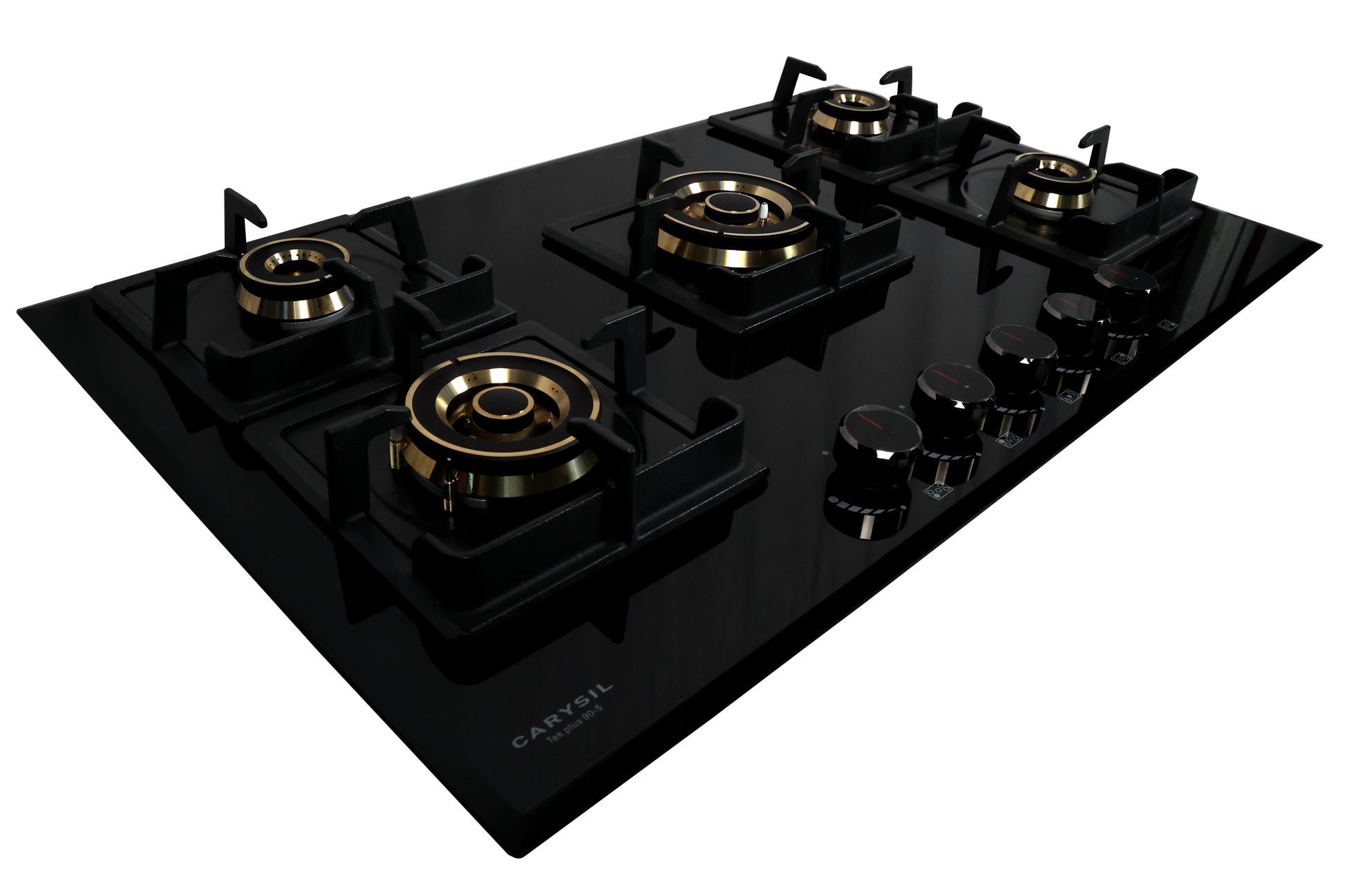 The built-in hob features 5 brass burners for high-speed heat, delicate simmering and adjustable heat spread. It includes 1 big triple ring burner, 1 mini triple ring burner, 2 medium ring burner and 1 small ring burner. This setup ensures even heat distribution, precise temperature control, making your kitchen tasks faster, easier, and more efficient.