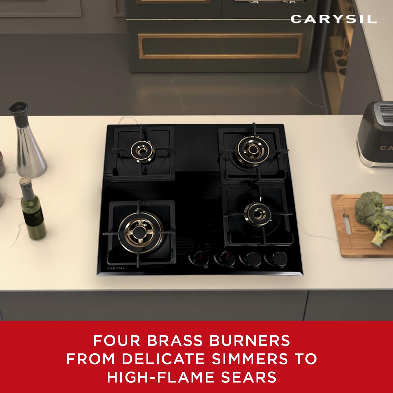 The built-in hob features 4 brass burners for high-speed heat, delicate simmering and adjustable heat spread. It includes 1 big triple ring burner, 1 mini triple ring burner and 2 dual ring burners. This setup ensures even heat distribution, precise temperature control, making your kitchen tasks faster, easier, and more efficient.