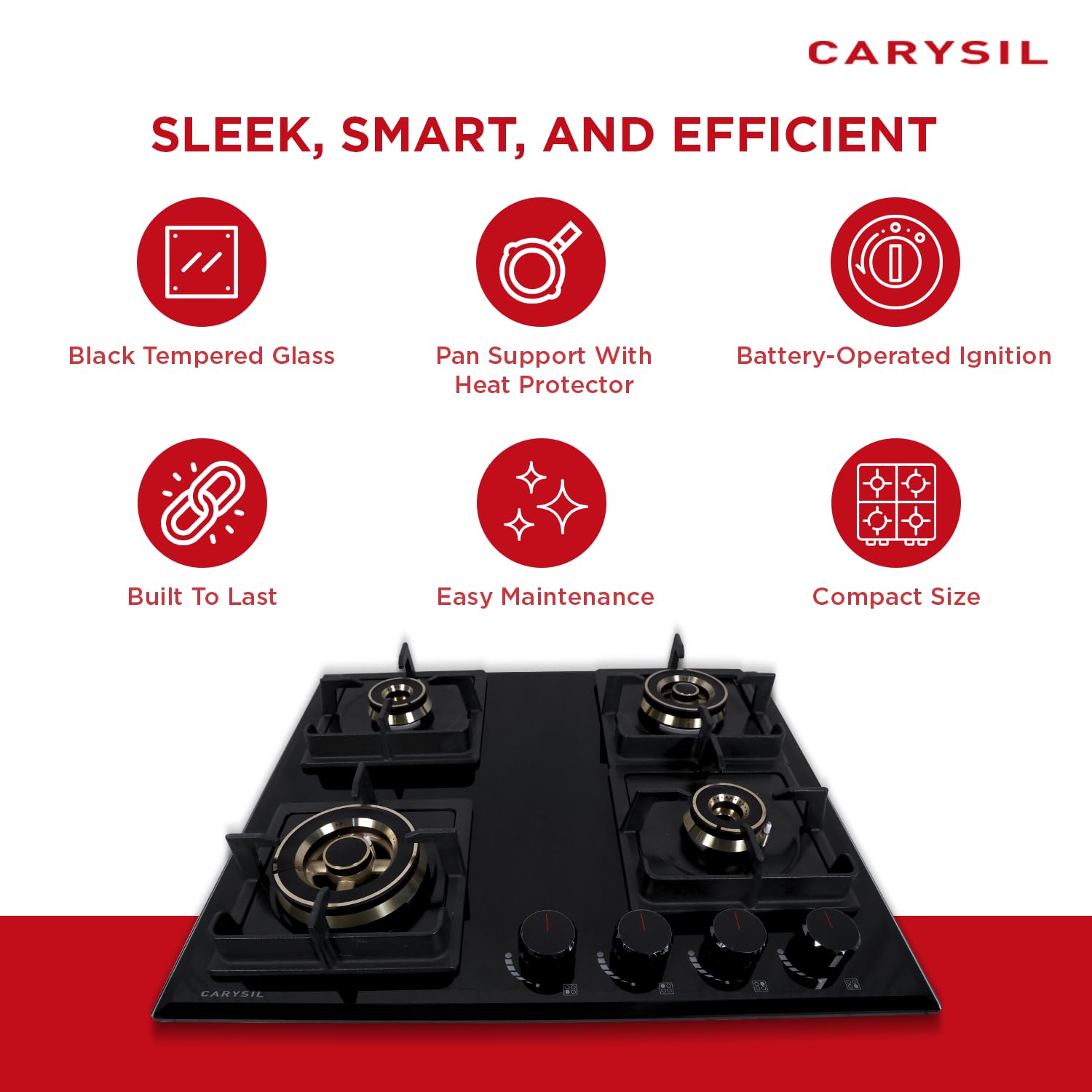 The Carysil built-in hob comes with a 2-year manufacturer warranty, effective from the date of purchase, ensuring peace of mind and reliability for your kitchen investment.