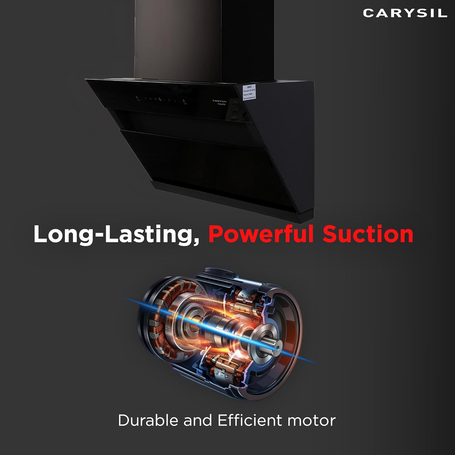 Carysil Vista 60 cm Kitchen Chimney, Vertical Slant, 1350 m³/hr Suction Capacity, Filterless, 3-Speed Motion Sensor, Heat Auto Clean, Oil Collector, LED Lamp, 7-year Motor Warranty