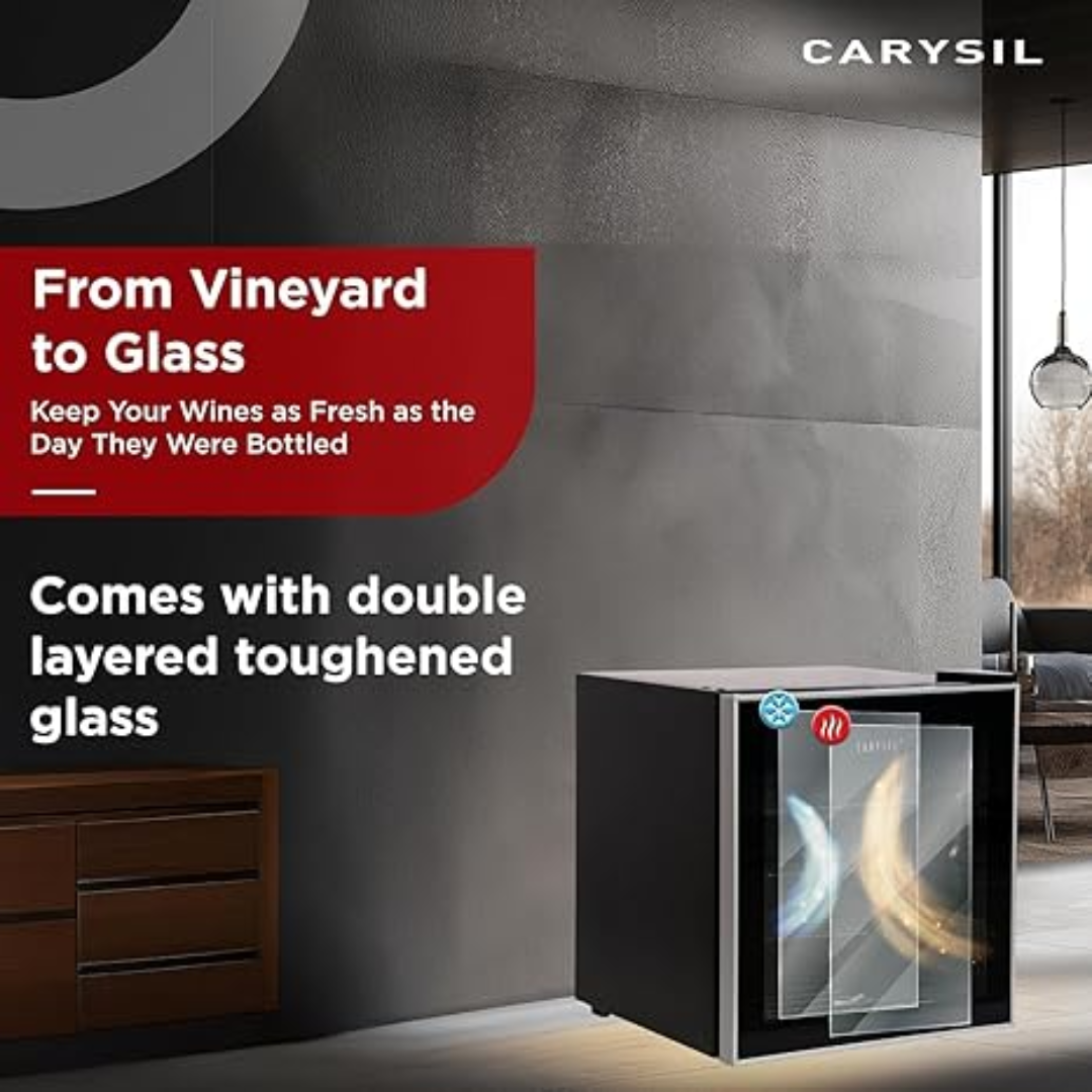 The Carysil Wine Chiller operates quietly, creating a serene and pleasant atmosphere for your home or office. This characteristic is especially advantageous for those who prefer their wine cooler to be discreet and not disrupt the ambiance.