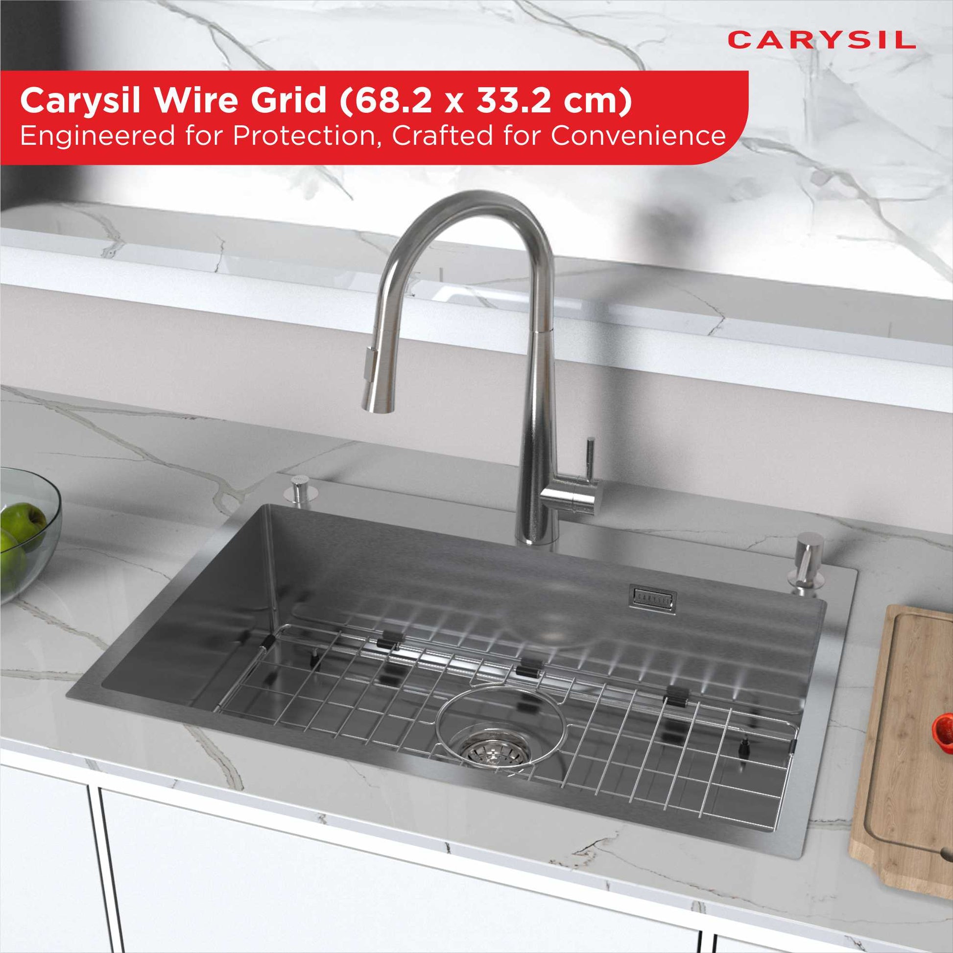 Carysil Wire Grid for Kitchen Sink, 304-Grade Stainless Steel, Metal Dish Drying Rack, Self Draining, Prevents Sliding, Kitchen Sink Accessories, 68.2x33.2x2.96 cm